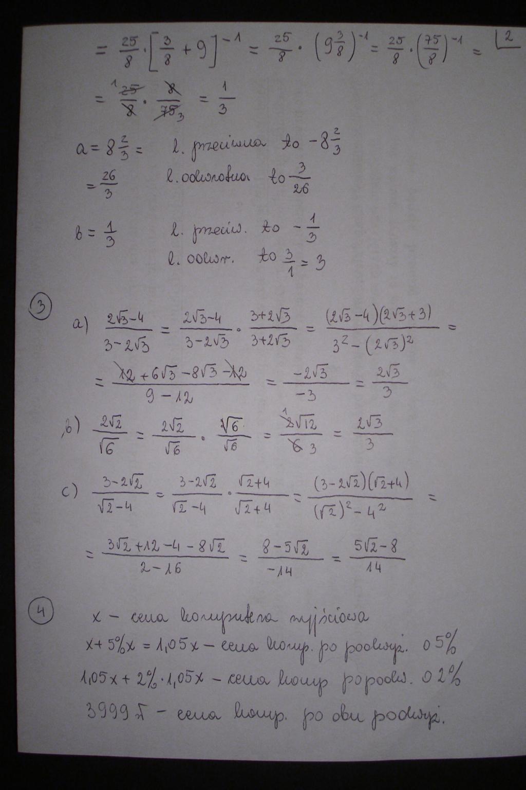 Zad 2: Kalkulator! Poza tym nie bardzo wiem, co to "liczba przeciwna" - ta sama z minusem? Bo odwrotna to pewnie 1 / x. Sensu nie widzę w takich rachunkowych ćwiczeniach.