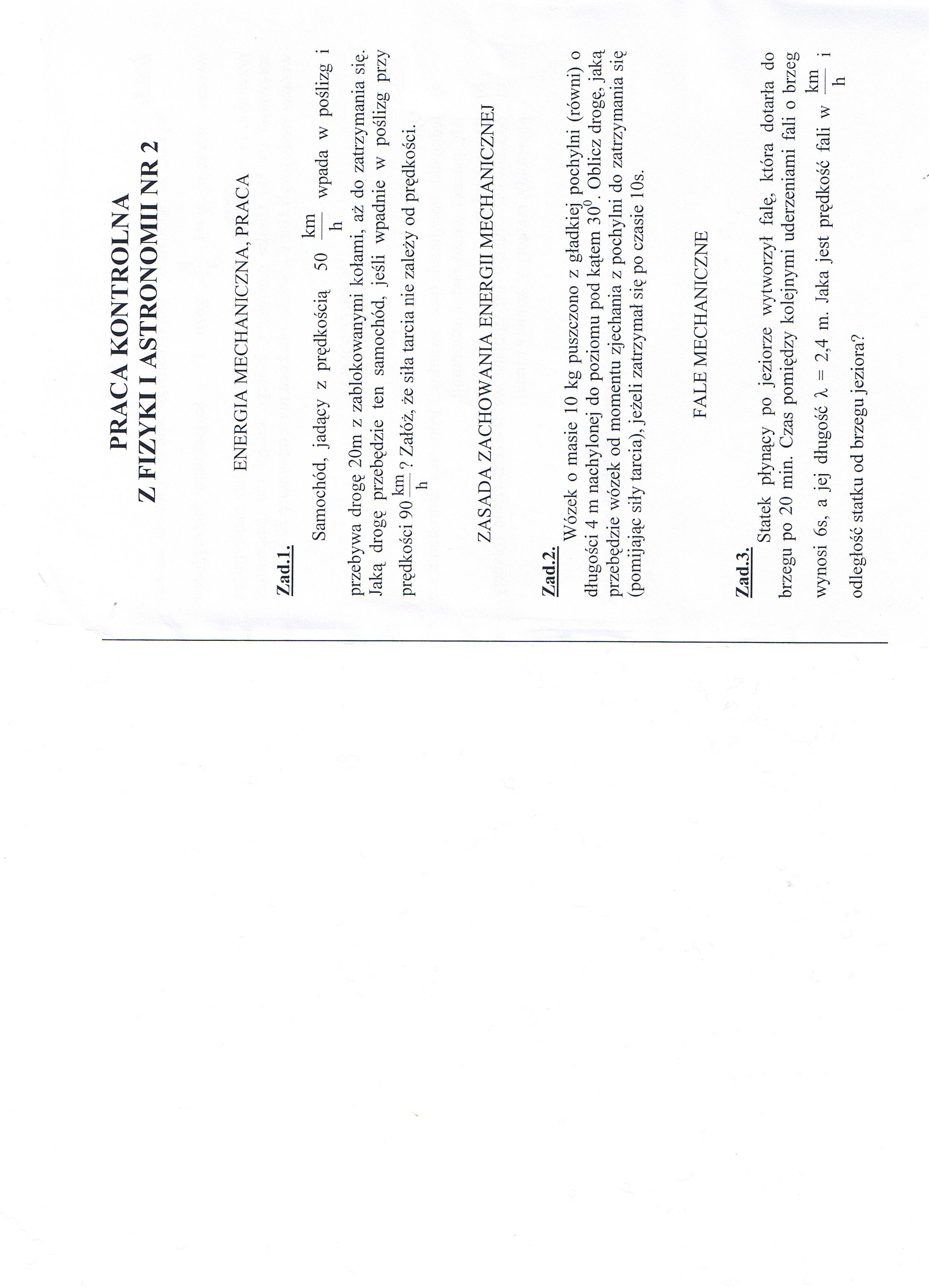 NIe można rozwiązywać "pomijając siły tarcia", gdyż wtedy wózek nie zatrzyma się na poziomej, gładkiej powierzchni. Proponuję kompromis: Nie ma tarcia na pochylni (stąd fragment "z gładkiej pochylni" w tekście), ale jest tarcie na powierzchni poziomej.