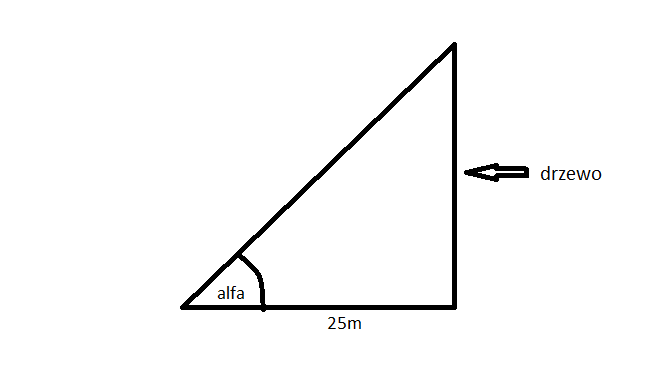 Wysokość drzewa (oznaczam "h") dzielona przez odległość d = 25 m na Twoim rysunku to tangens kąta alfa. Czyli: