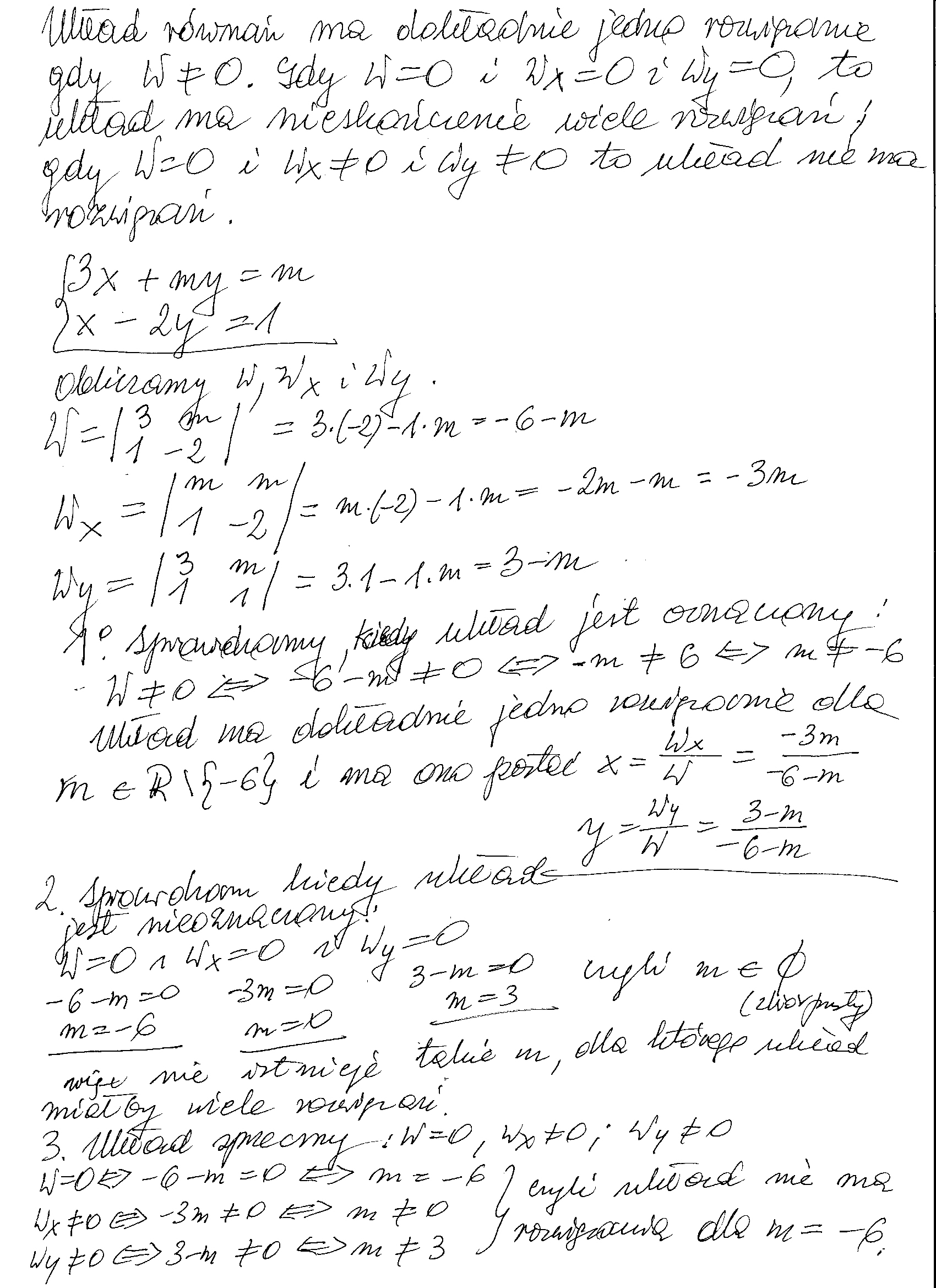 umiem potem wyznaczyć W, Wx i Wy i wyznaczyć z tego x i y , lecz chodzi mi o to kiedy jest 1 rozwiazanie kiedy niesk. wiele ,a kiedy sprzeczność.