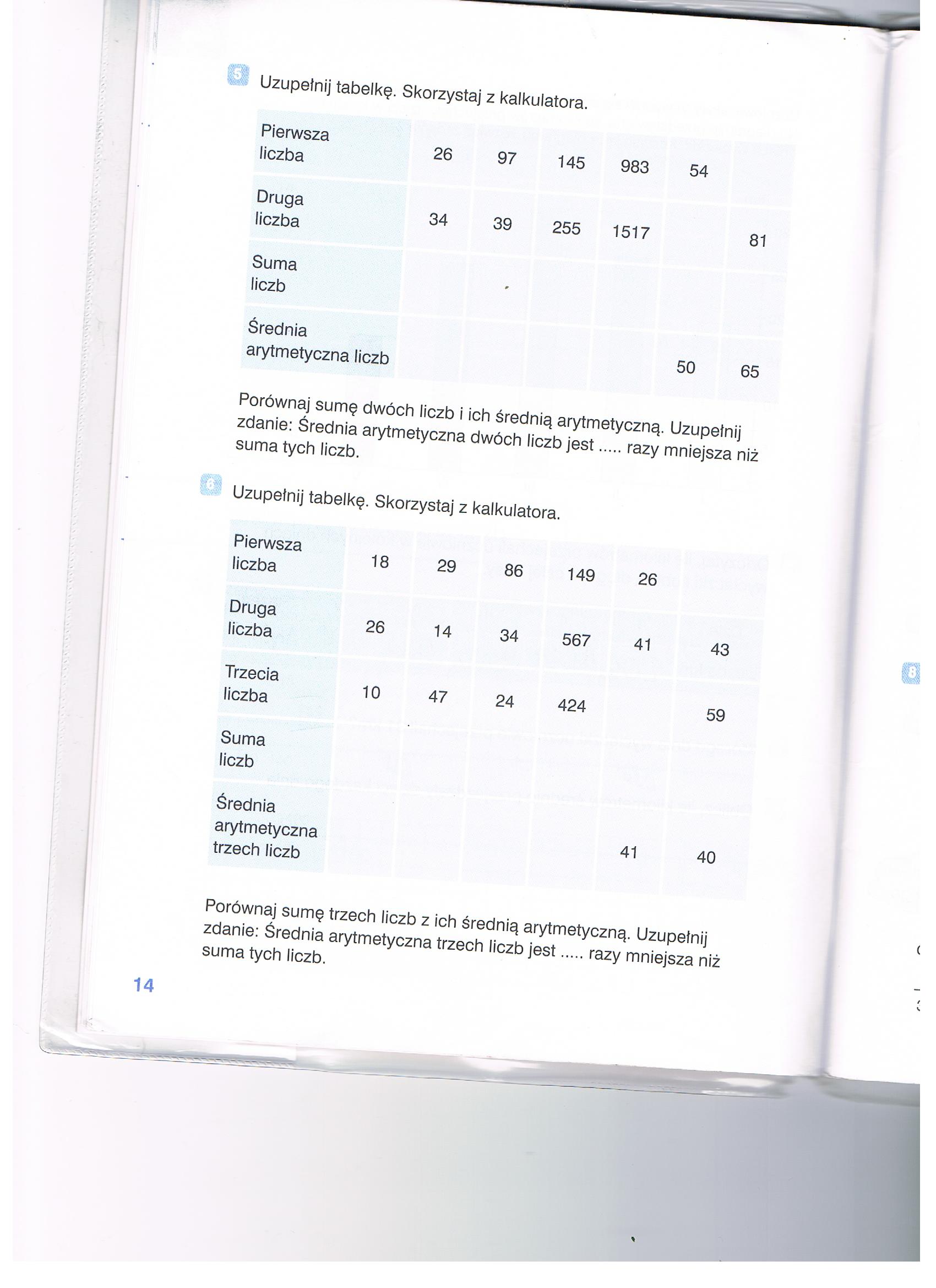 pierwsza l. druga l. suma l. śr. arytm. l.