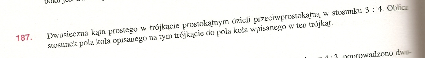 Długość boku c w jakichś jednostkach wynosi 7L. Siedem dlatego, że dwusieczna dzieli go w stosunku 3:4, wobec tego: AD = 3L, DB = 4L. Jak wyznaczę a, b w jednostkach L to "L" mi się skróci we wzorze na stosunek promieni.