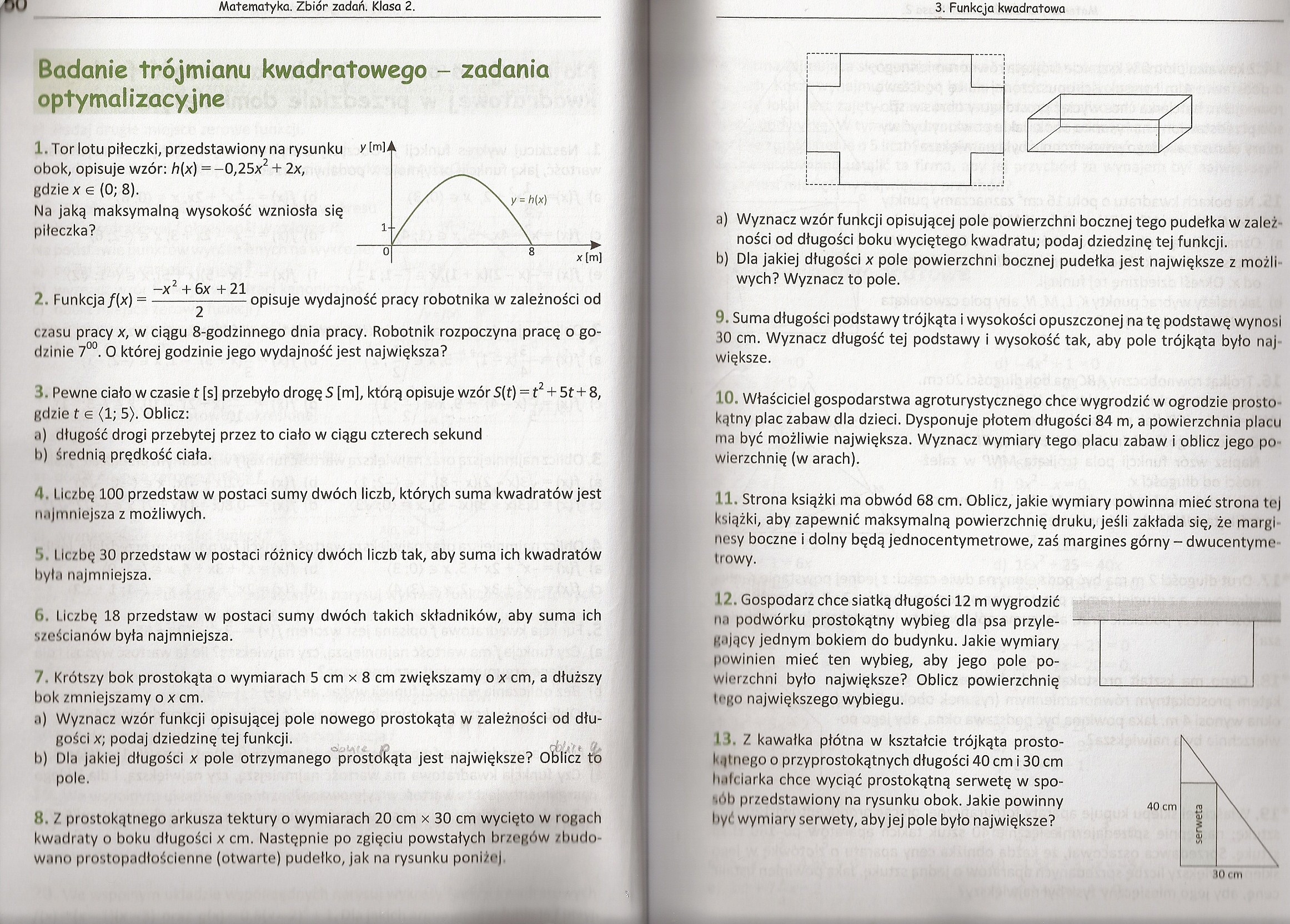 Nie podejrzewam, aby w II klasie były pochodne, więc zrobię inaczej. Narysowałem sobie na boku wykres tej funkcji dla x od 0 do 18. Faktycznie ma minimum (dla x = 9).