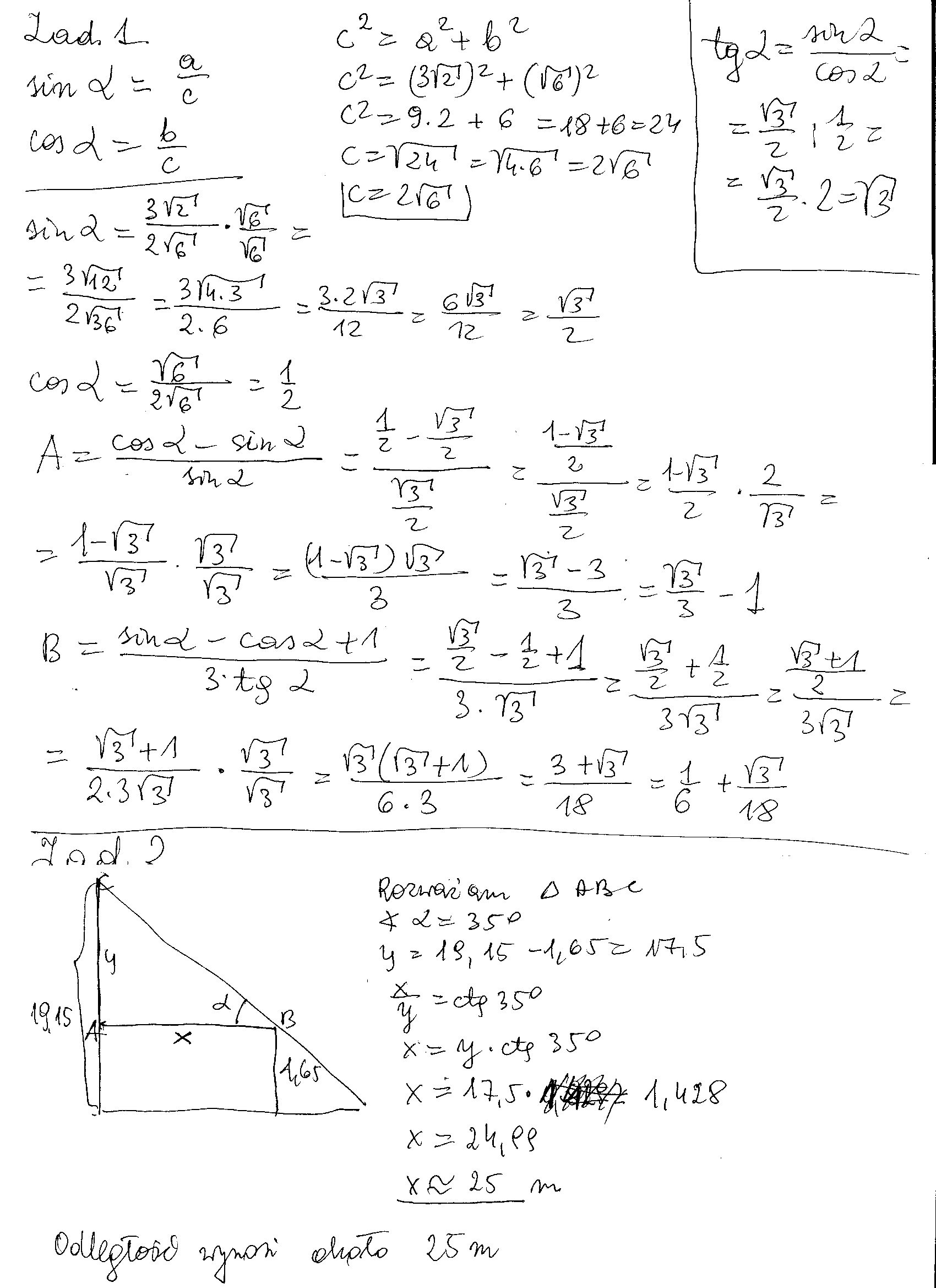 bardzo proszę o pomoc w zadaniach z funkcji trygonometrycznych, zadania załączniku, bardzo pilne