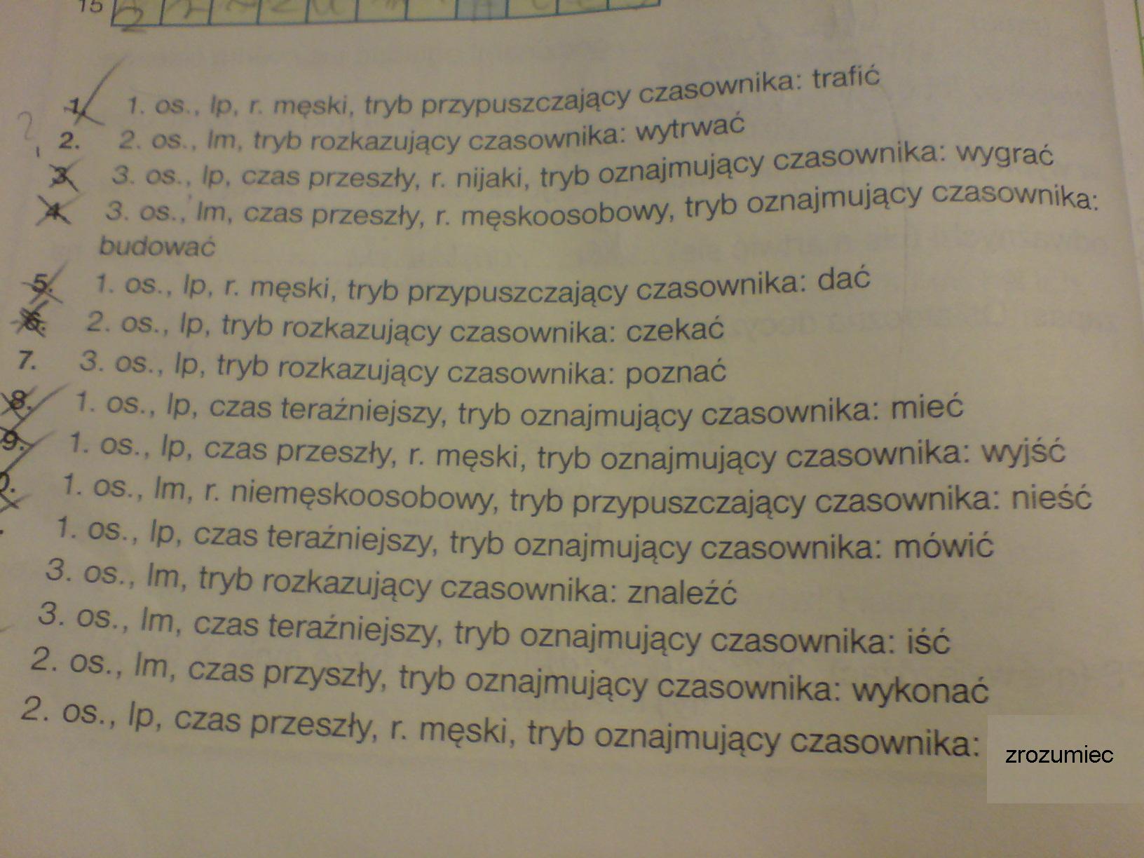 Uzupelnij krzyżówkę wpisując odpowiednie formy.