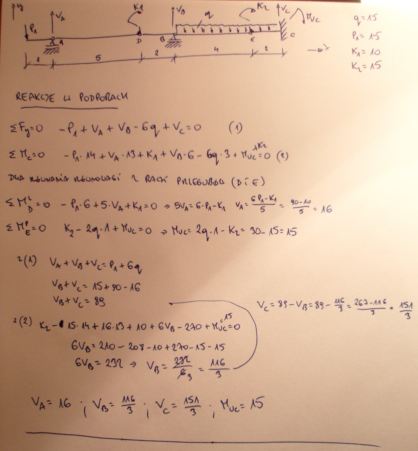 Narysuj rys. i oblicz: v,p,k1,k2 (momenty)i td..
