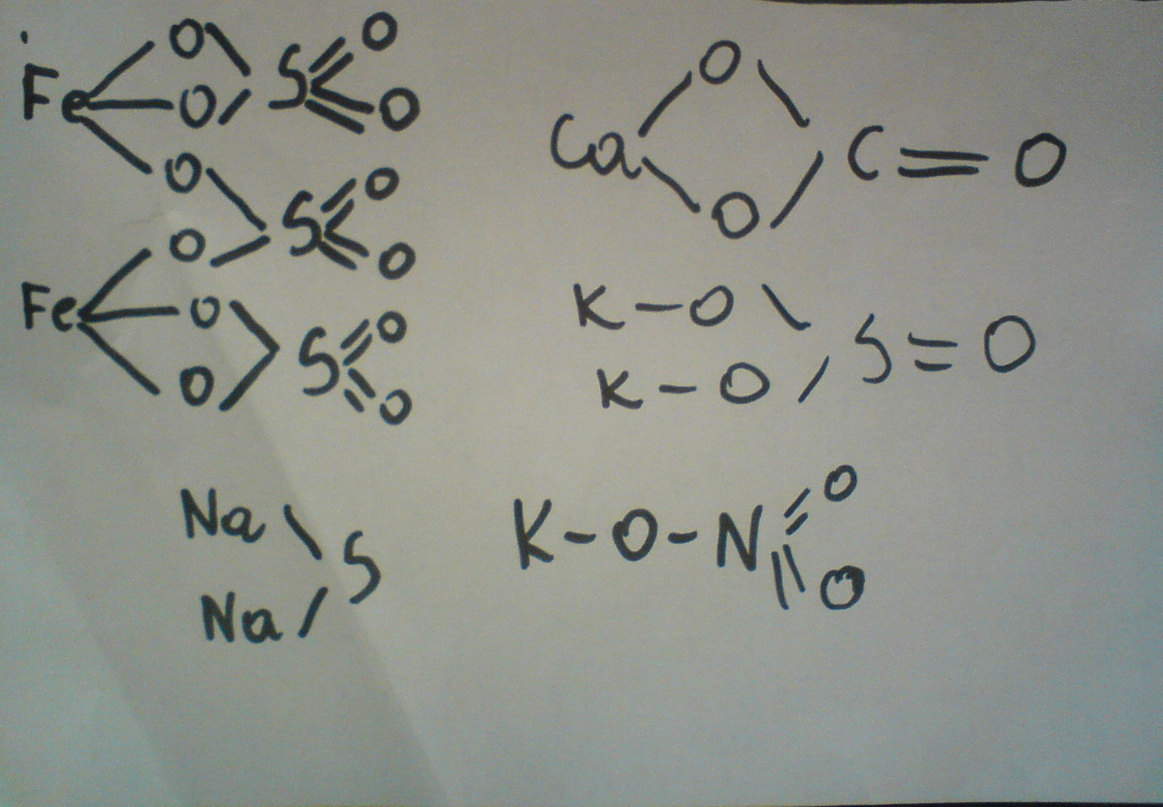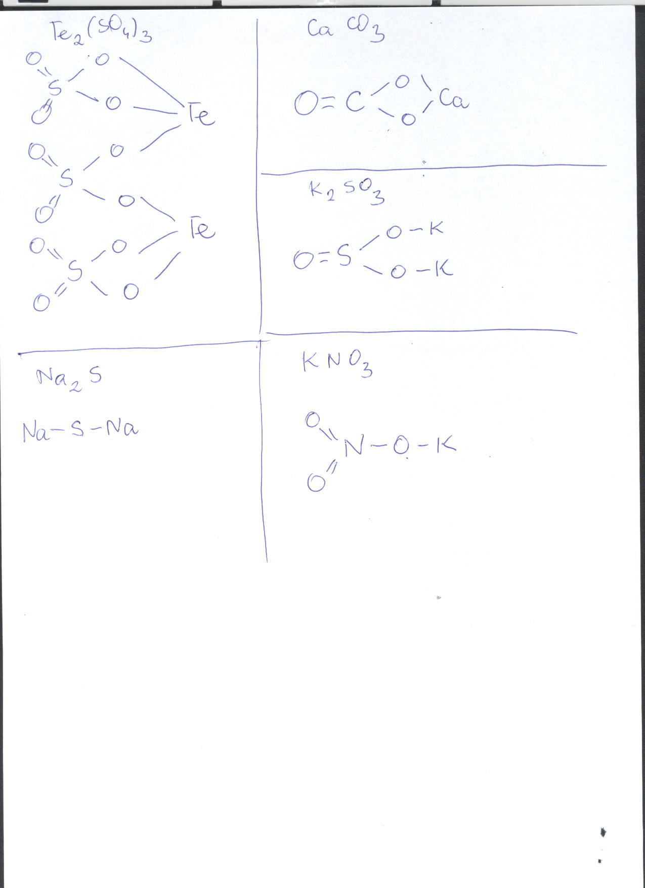 Napisz wzory strukturalne Fe2(SO4)3 , CaCO3 , K2SO3 , Na2S , KNO3