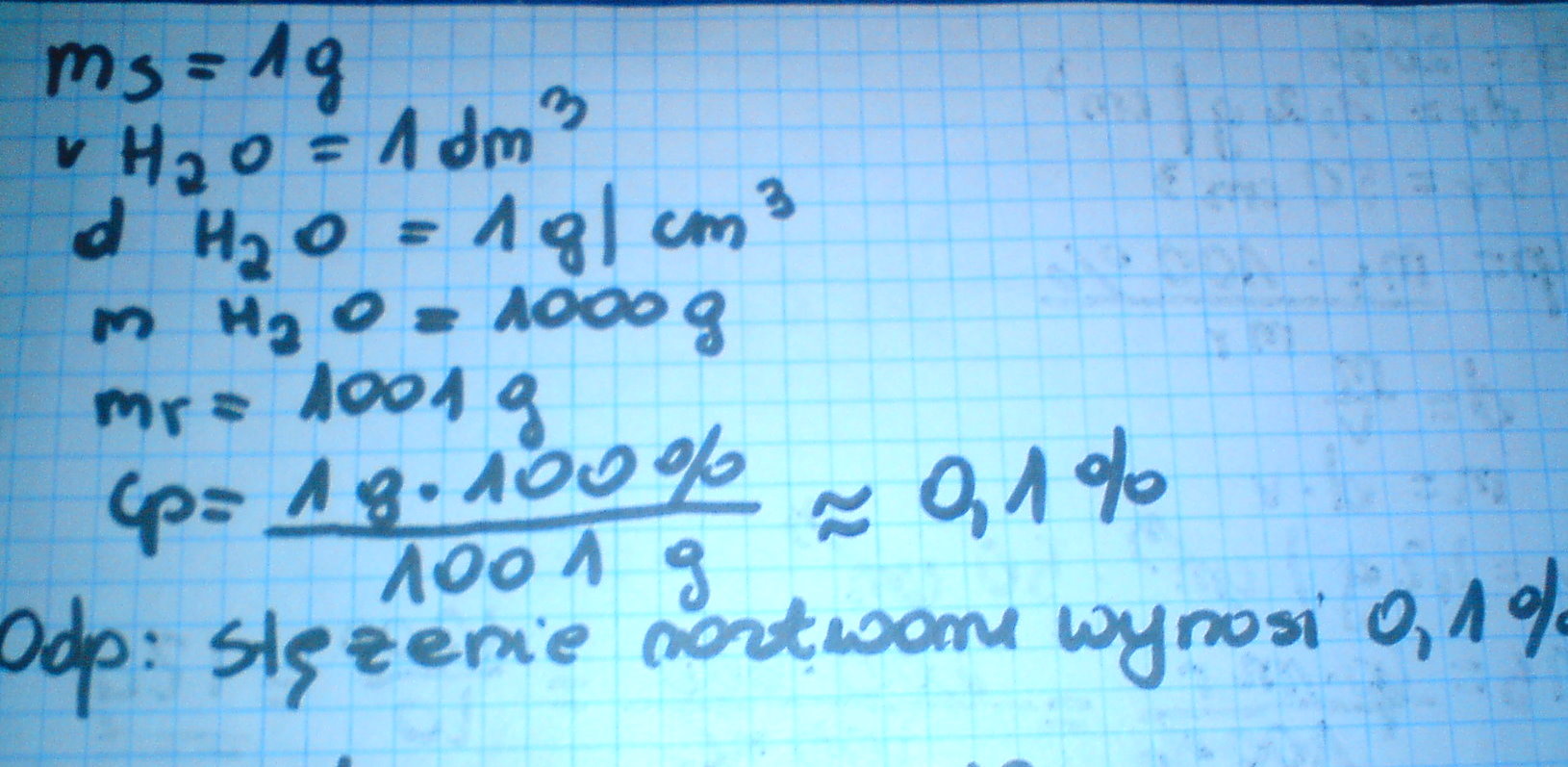 oblicz stezenie roztworu otrzymanego po rozpuszczeniu 1 g substancji w 1 dm3 wody