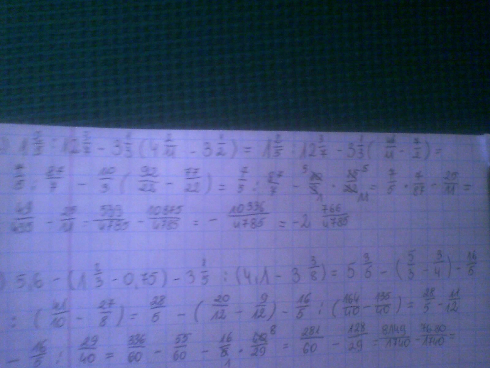 b) 5,6 -(1 2/3 - 0,75) - 3 1/5 : (4,1 - 3 3/8)