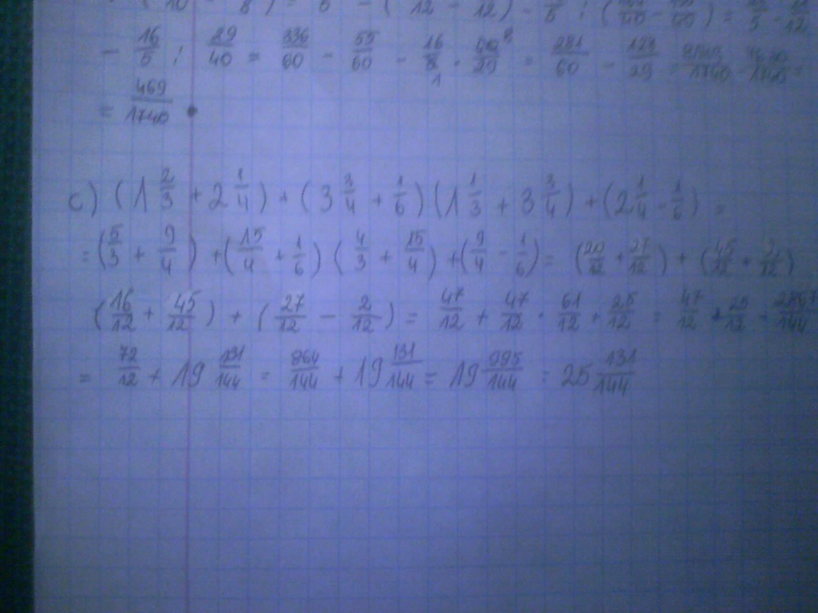 c) (1 2/3 + 2 1/4) + (3 3/4 + 1/6) (1 1/3 + 3 3/4) + (2 1/4 - 1/6).