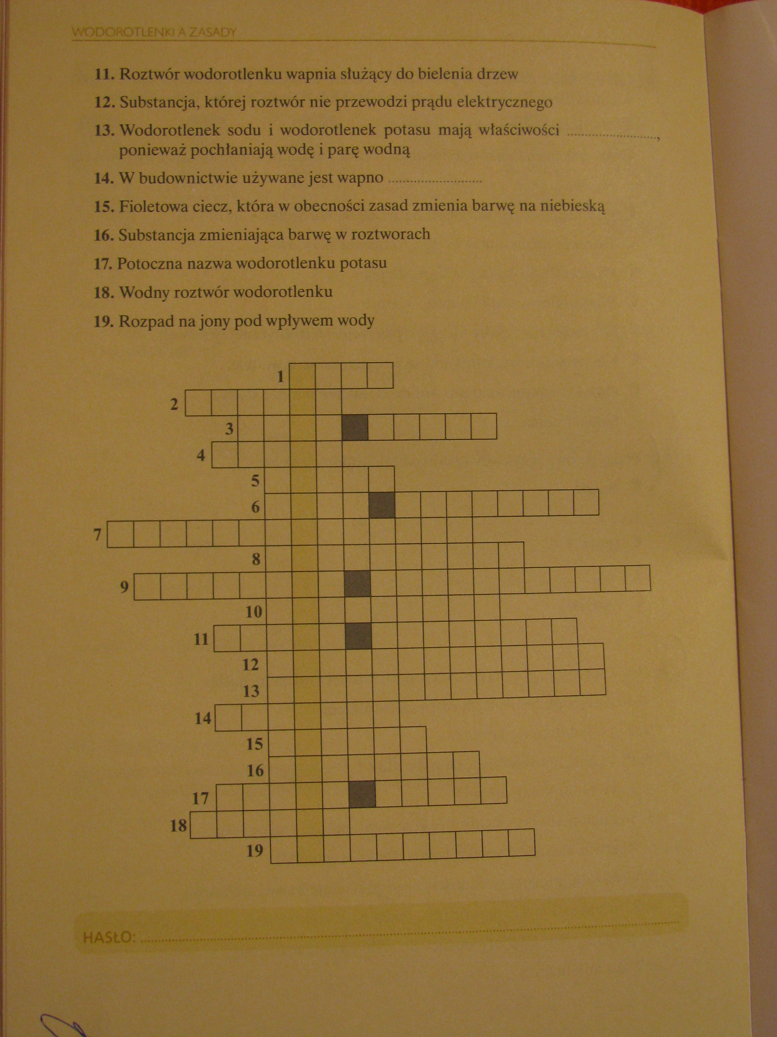 Hasło :WODOROTLENKI I ZASADY