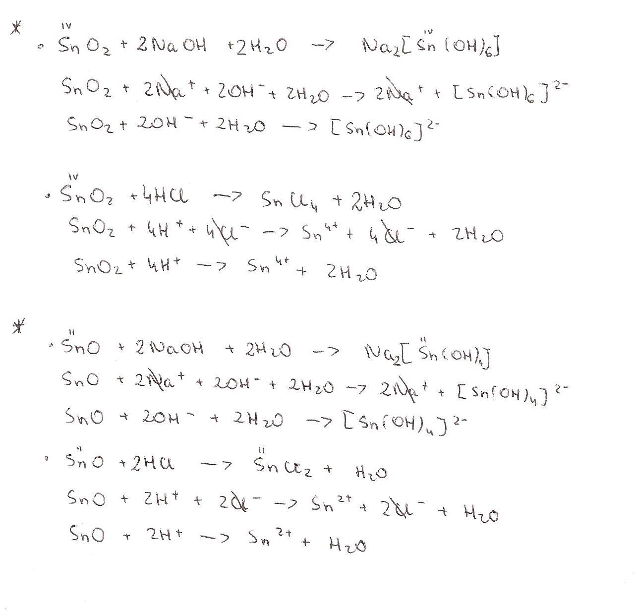 Tlenek Sn4 i tlenek Sn2 sA tlenkami amfoterycznymi. Uzasadnij potwierdzenie pisząc cząsteczkowo i jonowo równania reakcji tych tlenków NaOH i HCL.