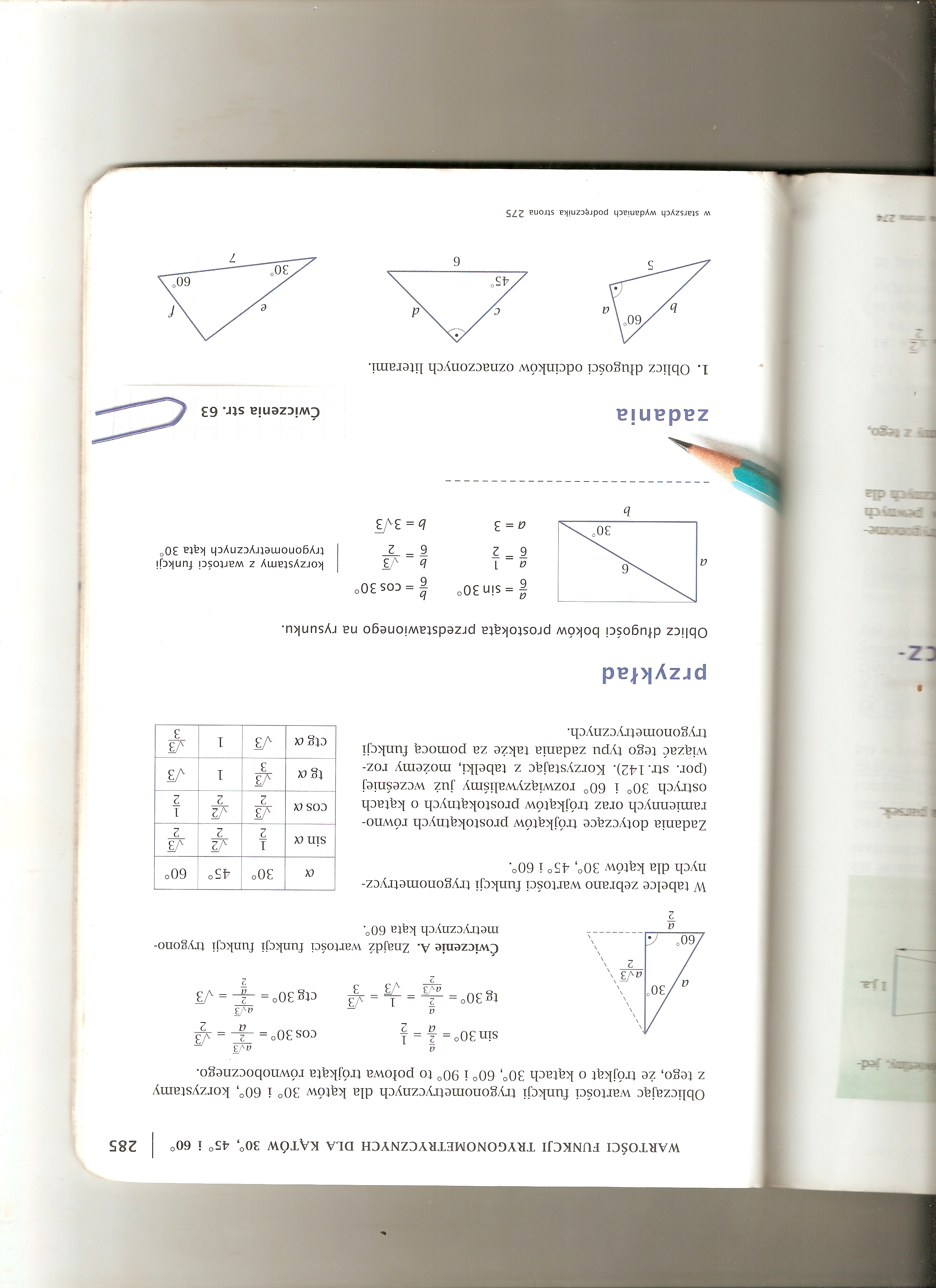 Wartosc funkcji trygonometrycznych dla katów 30 ,45 i 60 stopni