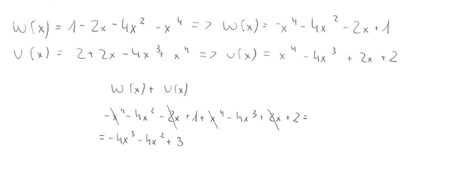 Wyznacz sumę wielomianów W(x) i U(x) jeśli :