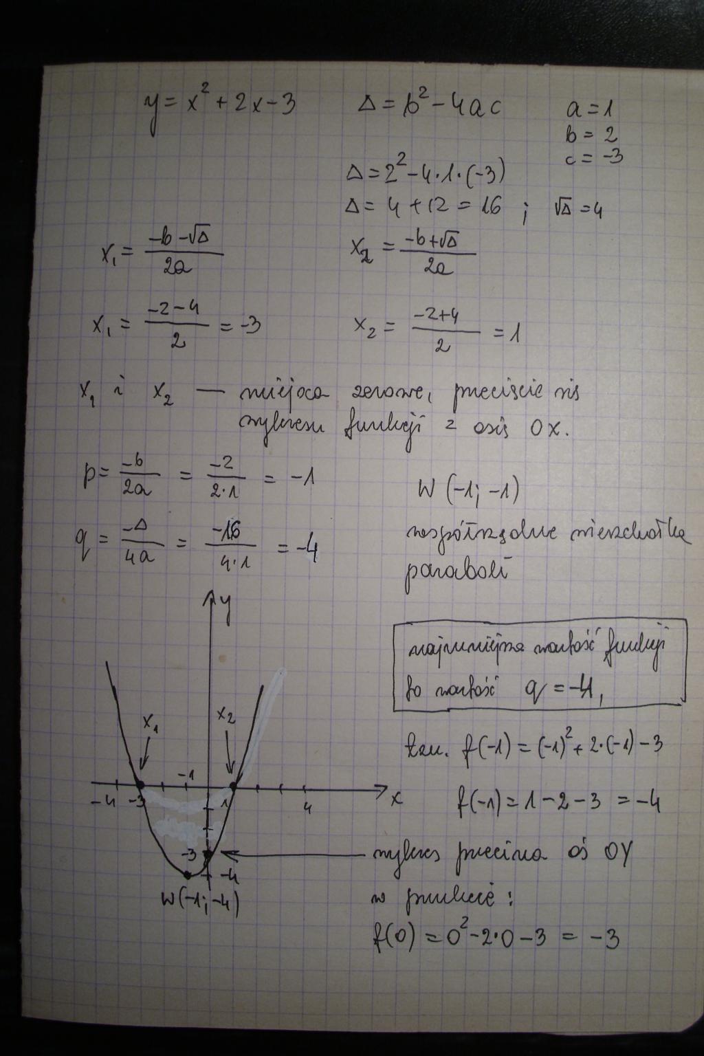 sporządz wykres funkcji y=x2+2x-3 podaj (oblicz)najmniejszą wartość funkcji.
