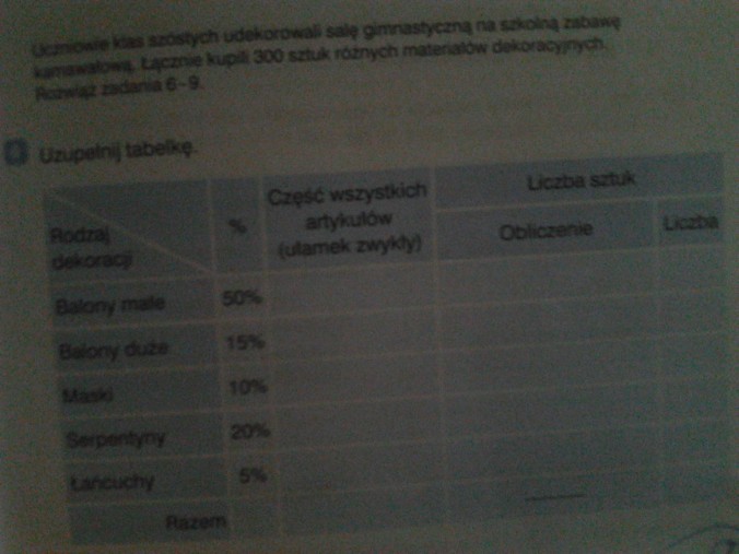 Rodzaj dekoracji % Częśćwszystkich artykułów (ułamek zwykły) Obliczenie Liczba