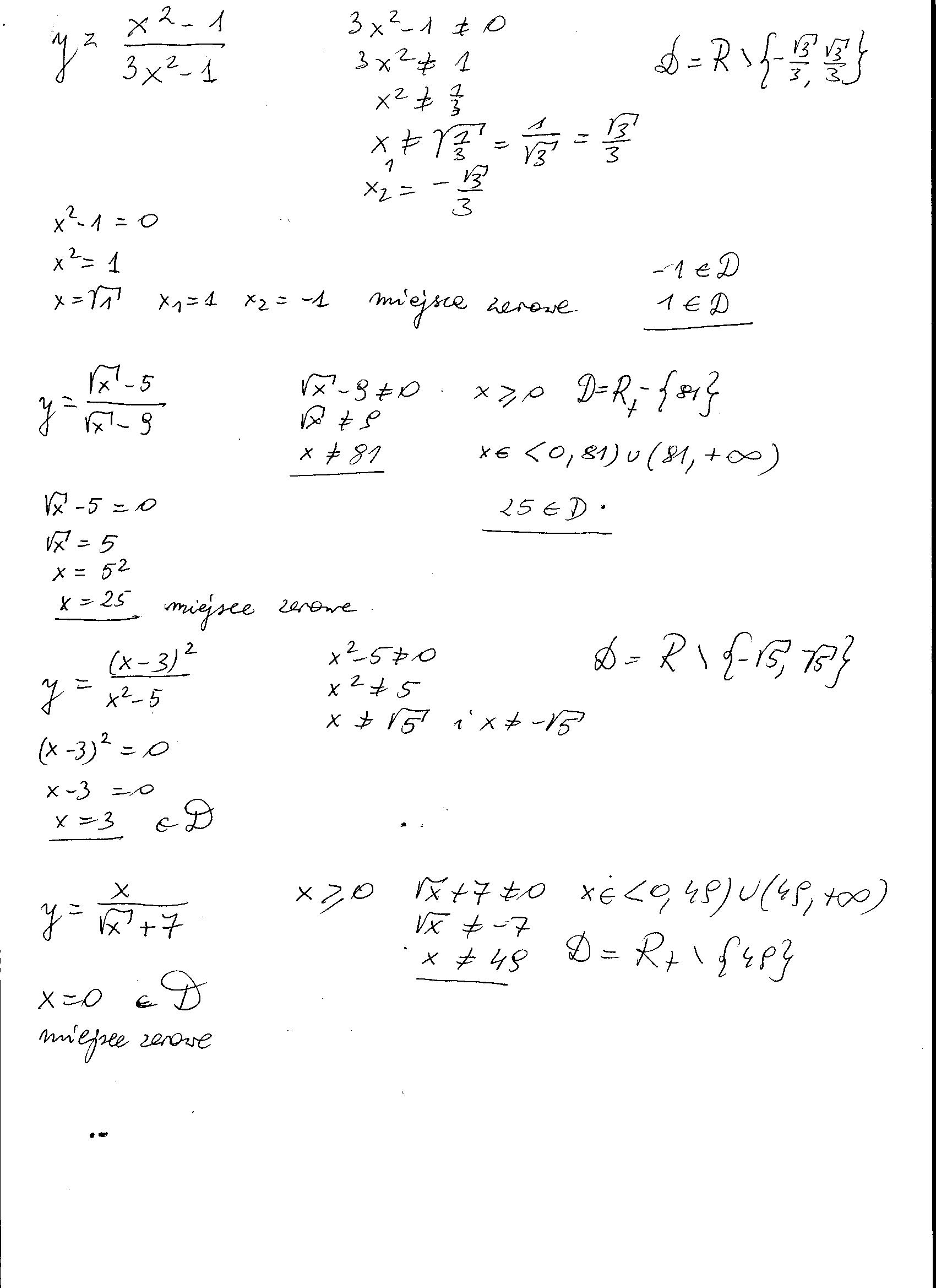Oblicz dziedzine i miejsca zerowe funkcji