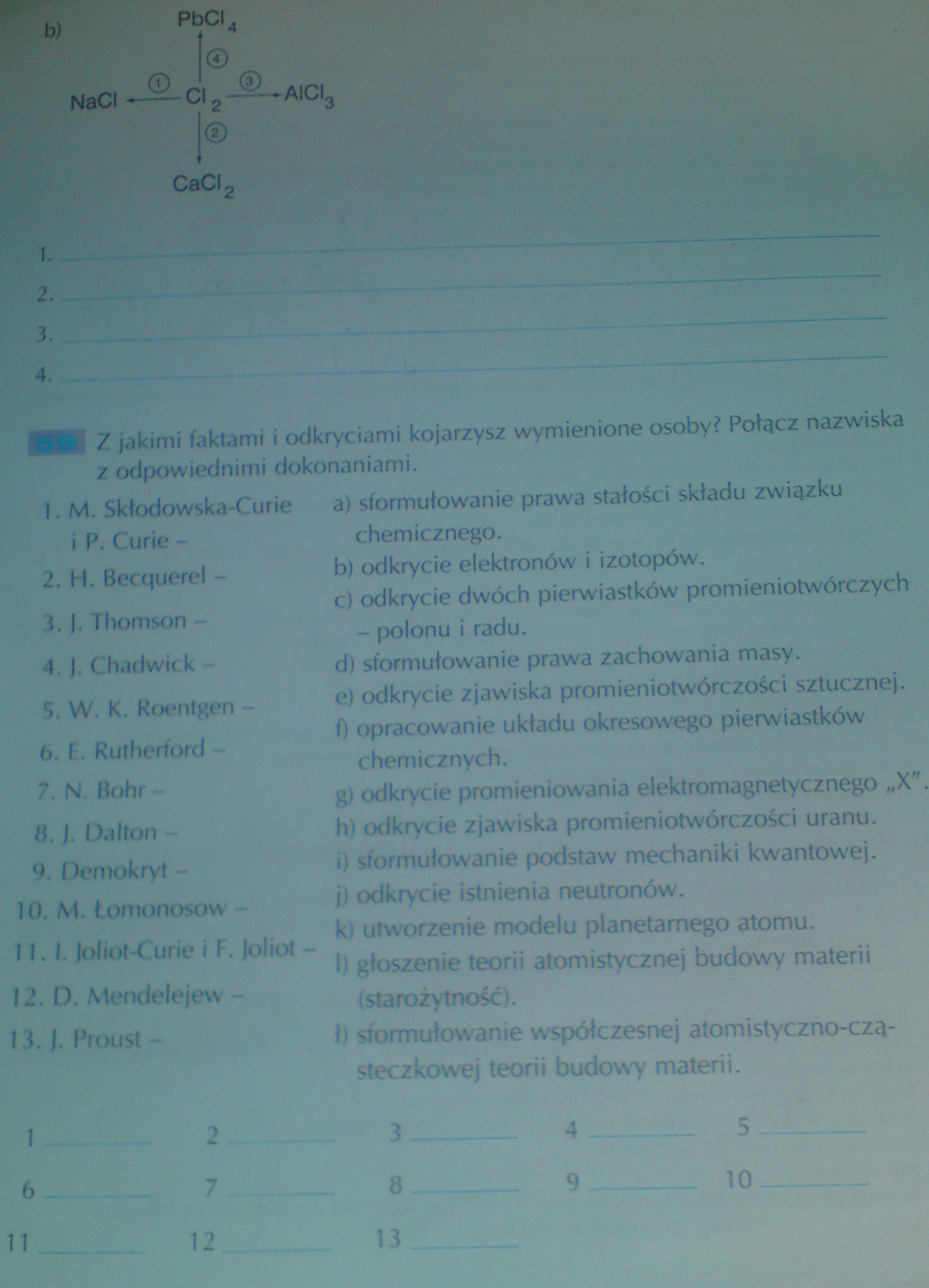 1.Cl2 + 2Na ---> 2NaCl (chlor,sód)