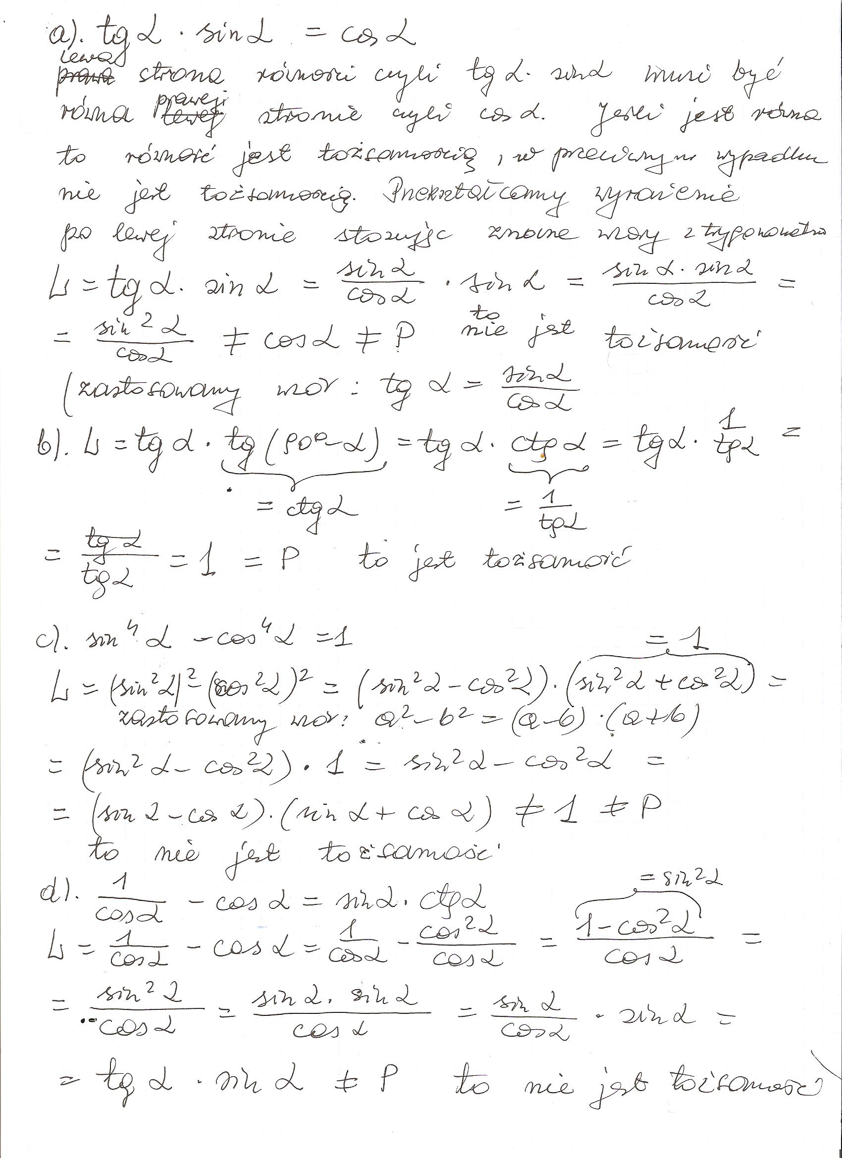 a)tg alfa*sin alfa=cos alfa