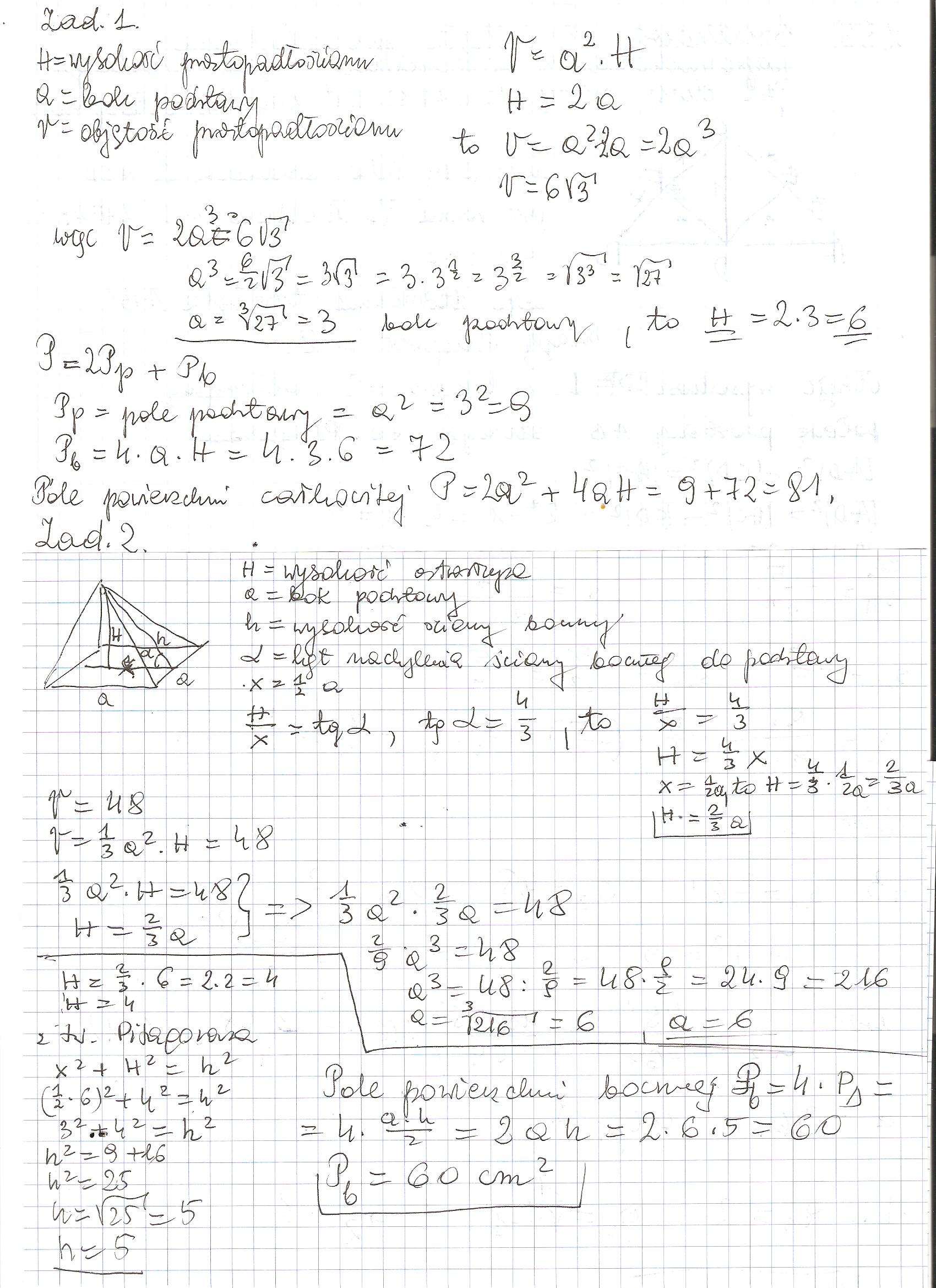 Dany jest ostrosłup prawidłowy czworokątny o objętości 48cm3(sześcienne).Ściana boczna jest nachylona do podstawy pod takim kątem L(alfa),że tgL= 4/3(cztery trzecie).wyznacz pole powierzchni bocznej tego ostrosłupa.