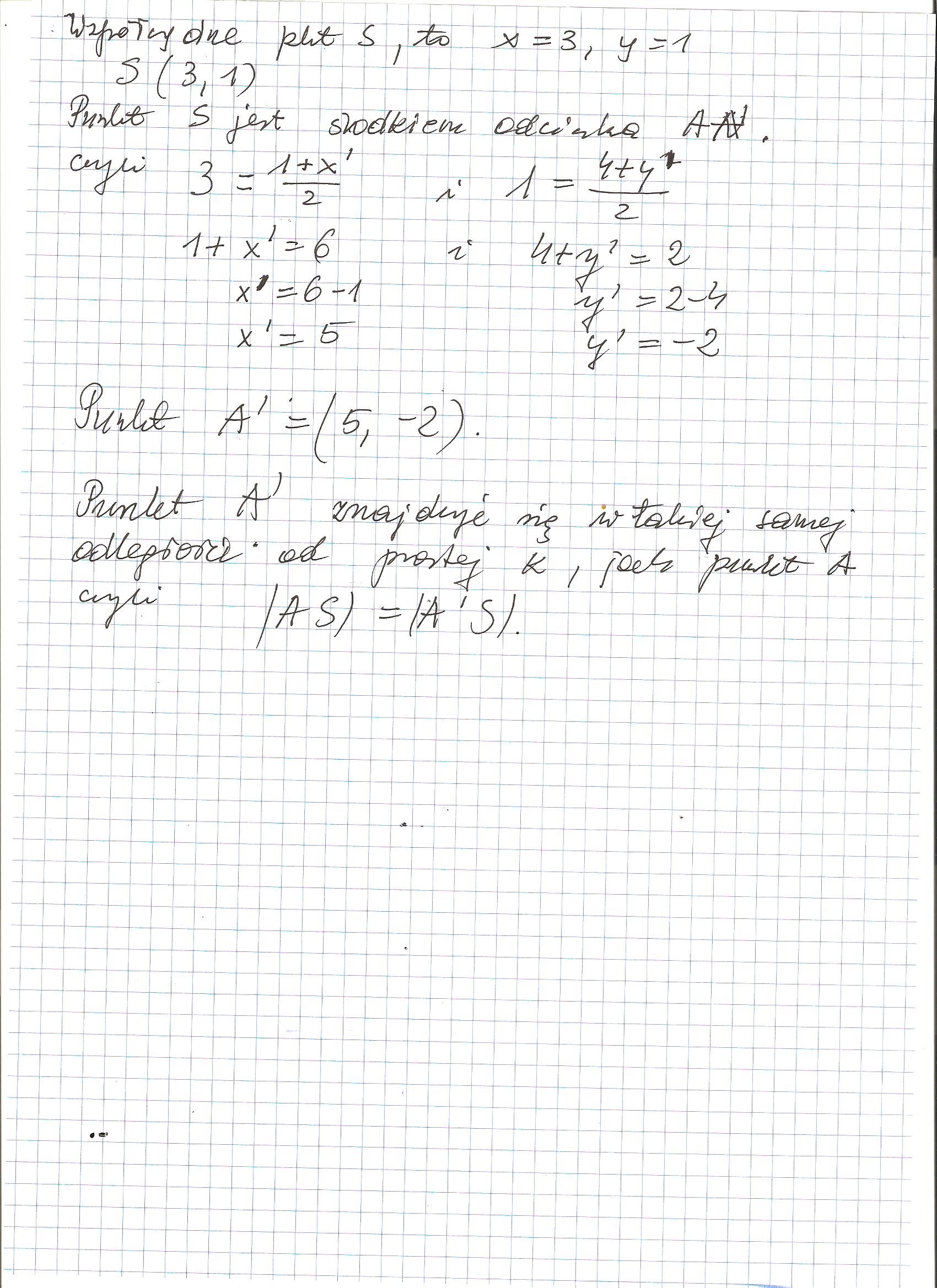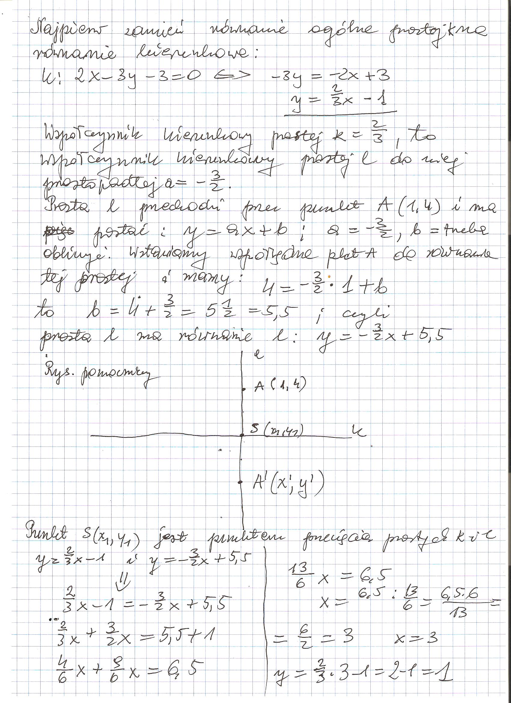 Punkt A(prim) jest obrazem punktu A(1,4) w symetrii osiowej wzgledem prostej k o równaniu k:2x-3y-3=0. Wyznacz współrzedne punktu A(prim)