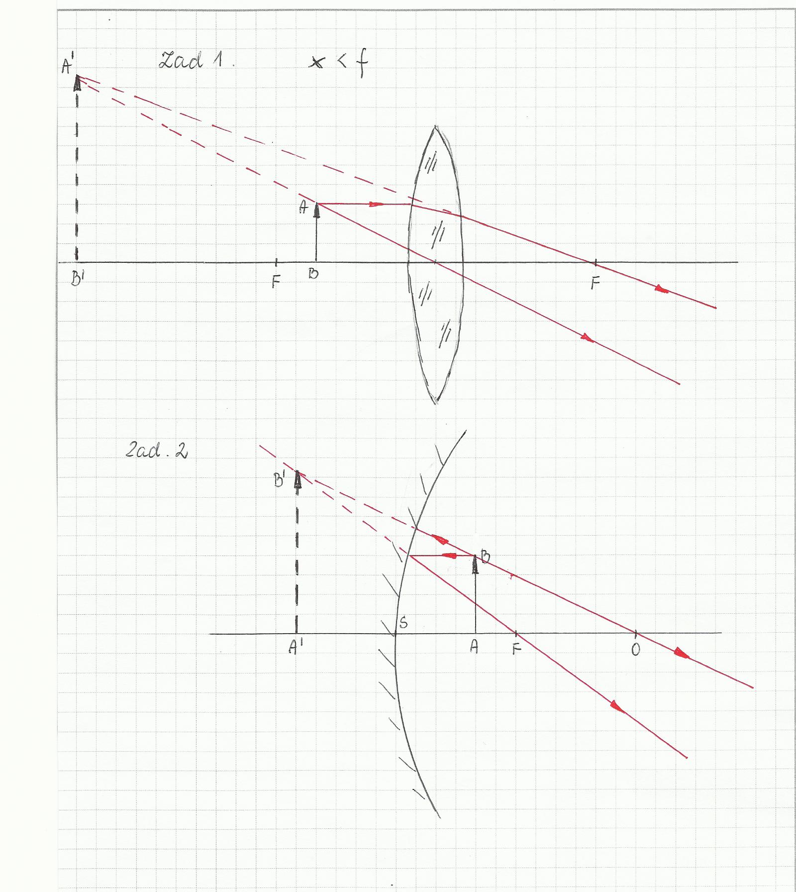 Oraz konstrukcje w soczewce rozpraszającej gdy x>2f do każdego rysunku zrób opis i oblicz powiększenie.