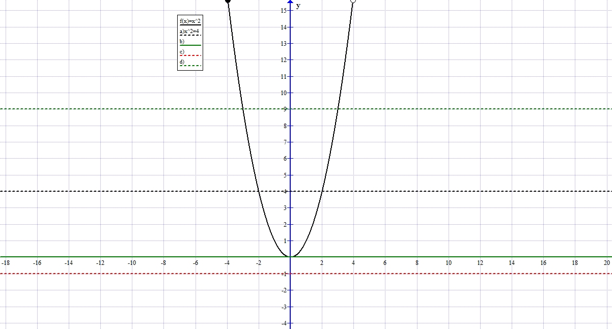 a) x^2=4 b)x^2=0 c)x^2=-1 d)x^2=9