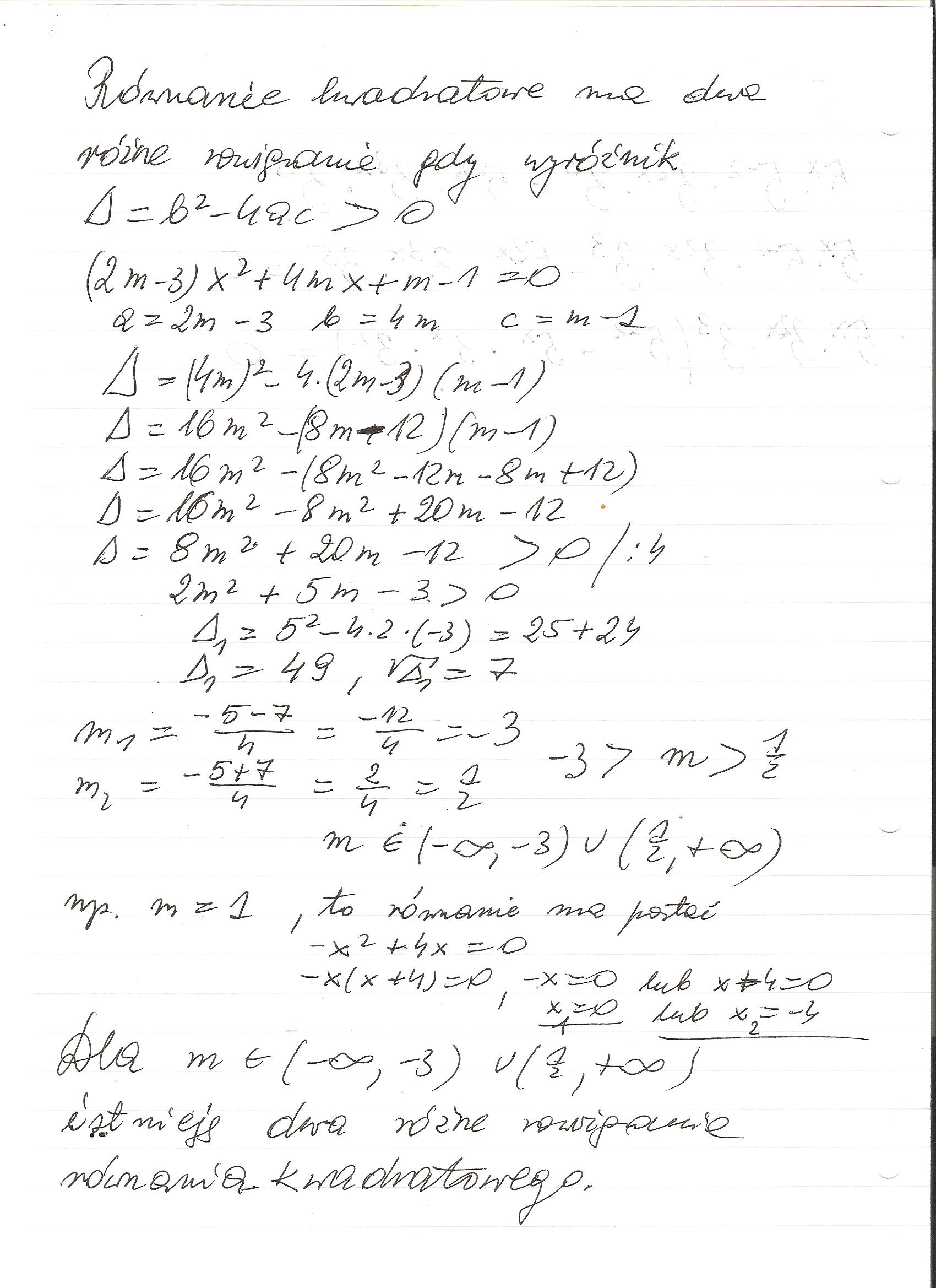 Dla jakiego m istnieją 2 różne rozwiązania x1 i x2