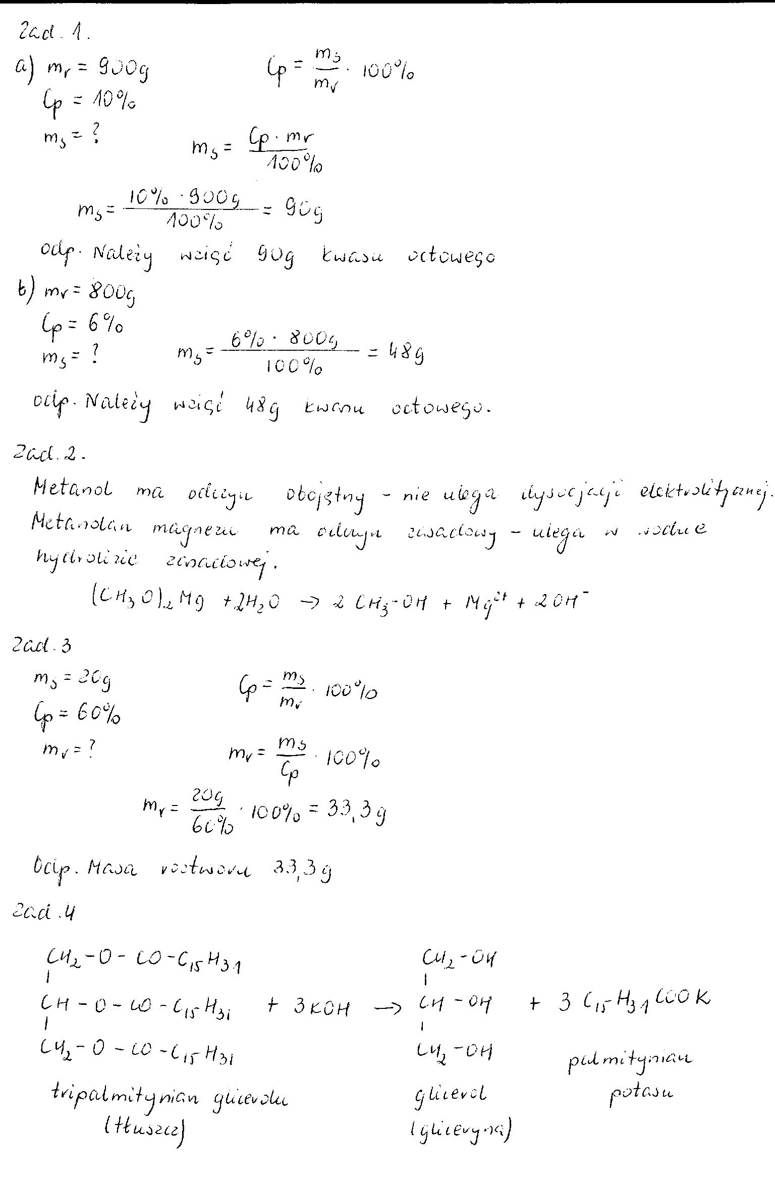 a)Ile gramów kwasu octowego należy wziąć, aby sporządzić 900g 10% octu (roztworu)?
