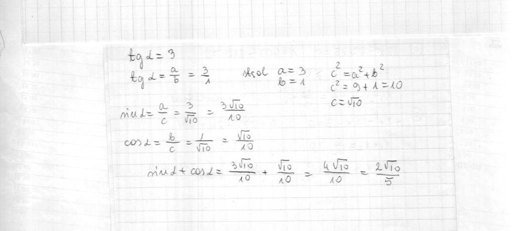 kąt alfa jest kątem ostrym / tg alfa = 3 oblicz sin alfa + cos alfa.