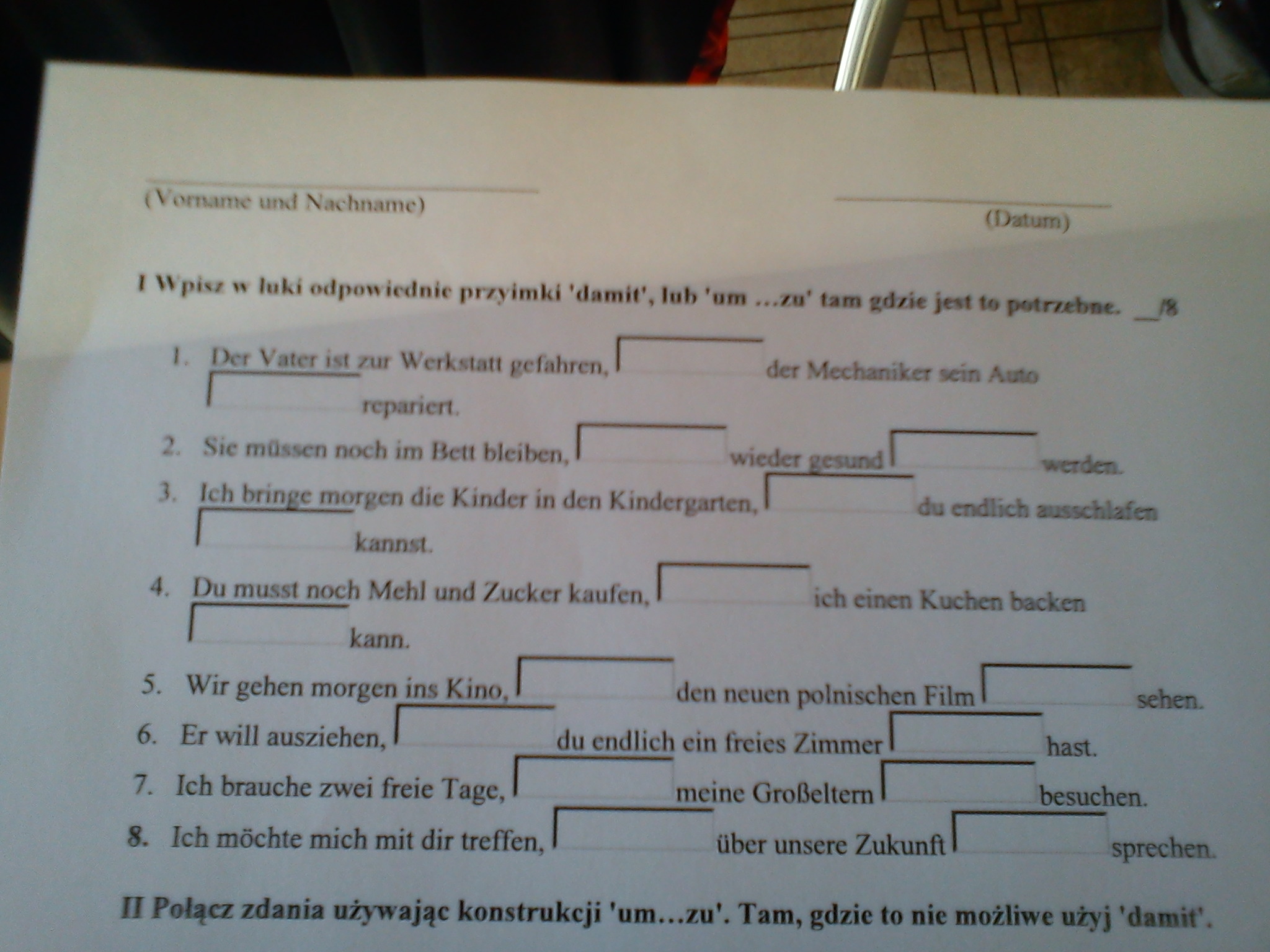 Przydatność 70% Konstrukcja "damit" i "um...zu"