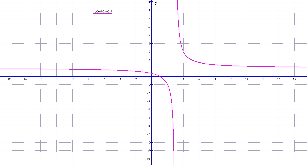 miejsce zerowe -2/(3-x)+1=0 /*(3-x), czyli -2+3-x=0, wiec x=1