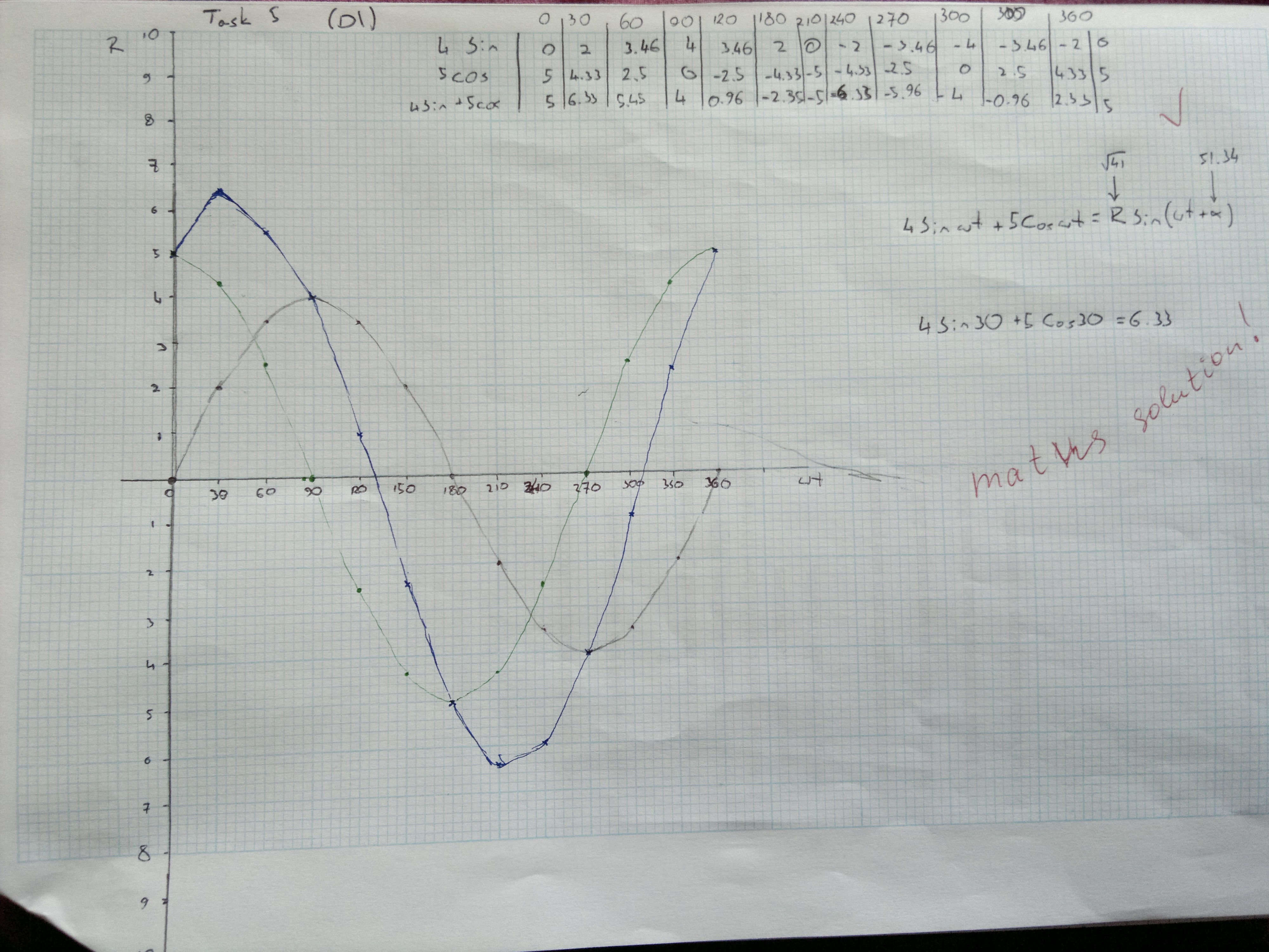 4\sin\omega t + 5\cos\omega t = R\sin(\omega t + \alpha)