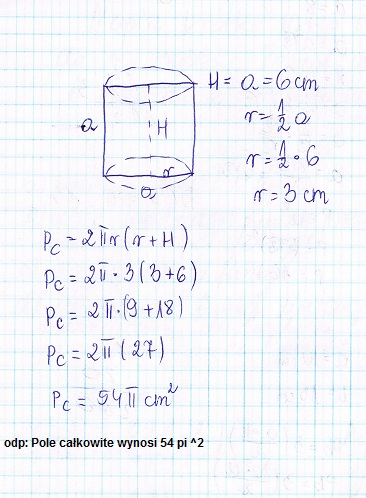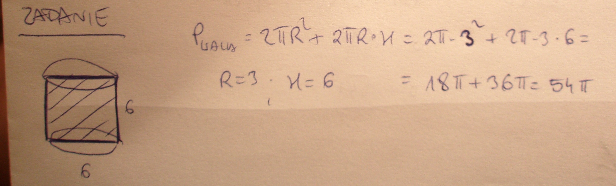 Przekroj osiowy walca jest kwadratem o boku dlugosci 6. Powierzchnia tego walca wynosi?