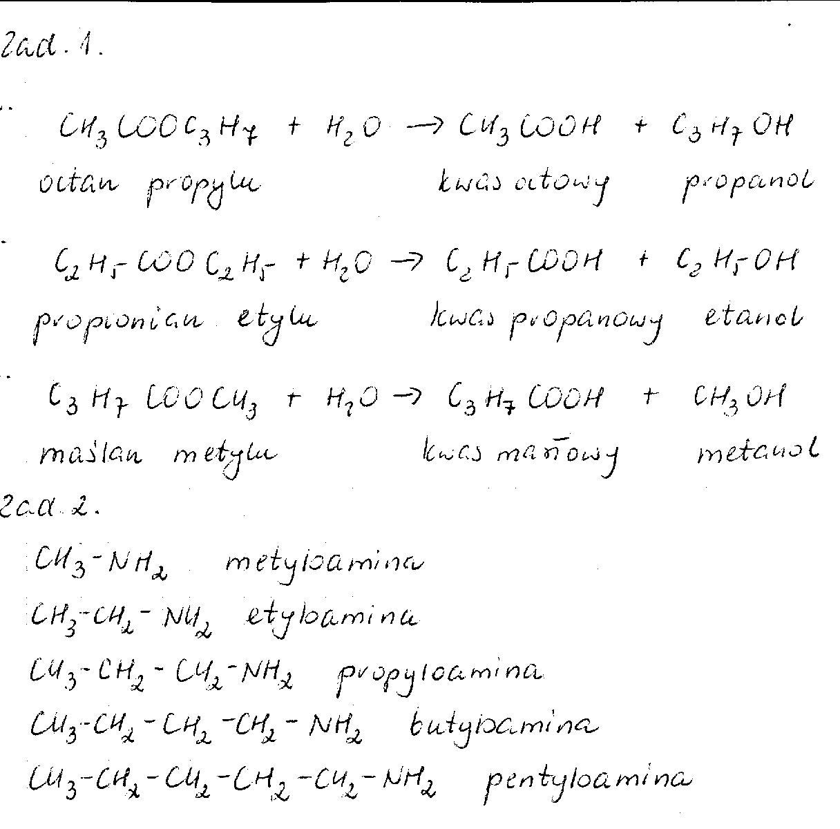 2. podaj wzory i nazwy pierwszych pięciu amin.