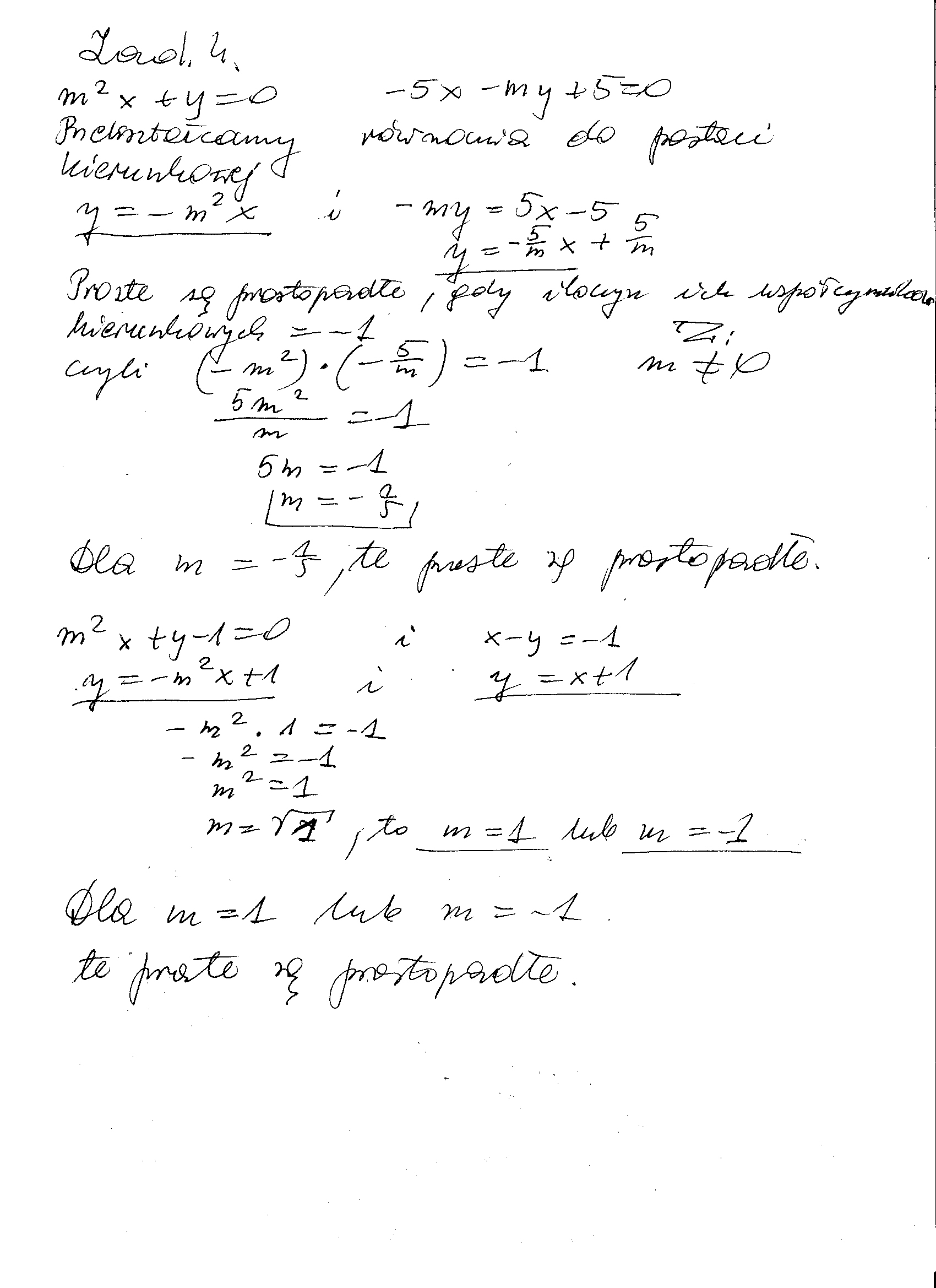 4. Dla jakiego parametru m proste sa prostopadle