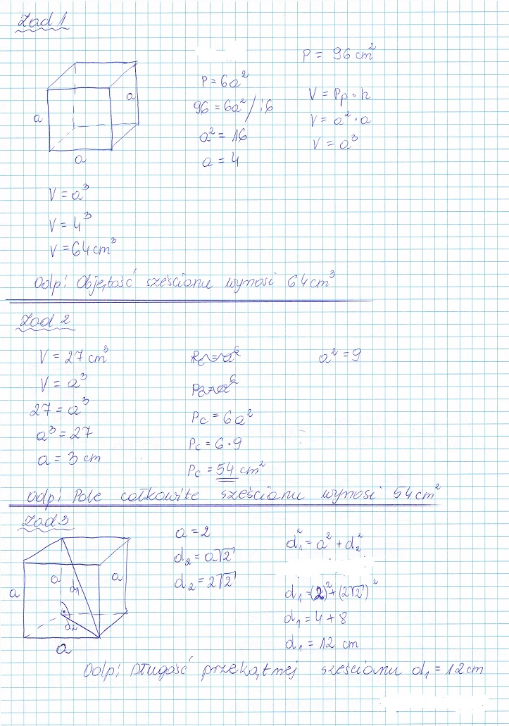 3. oblicz długość przekątnej sześcianu o krawędzi a=2.