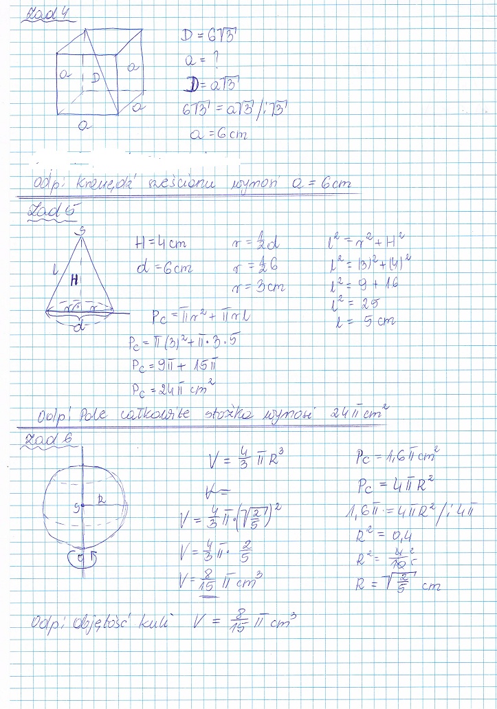 6.oblicz objętość kuli o polu pow. całkowitej Pc=1,6 PI cm.