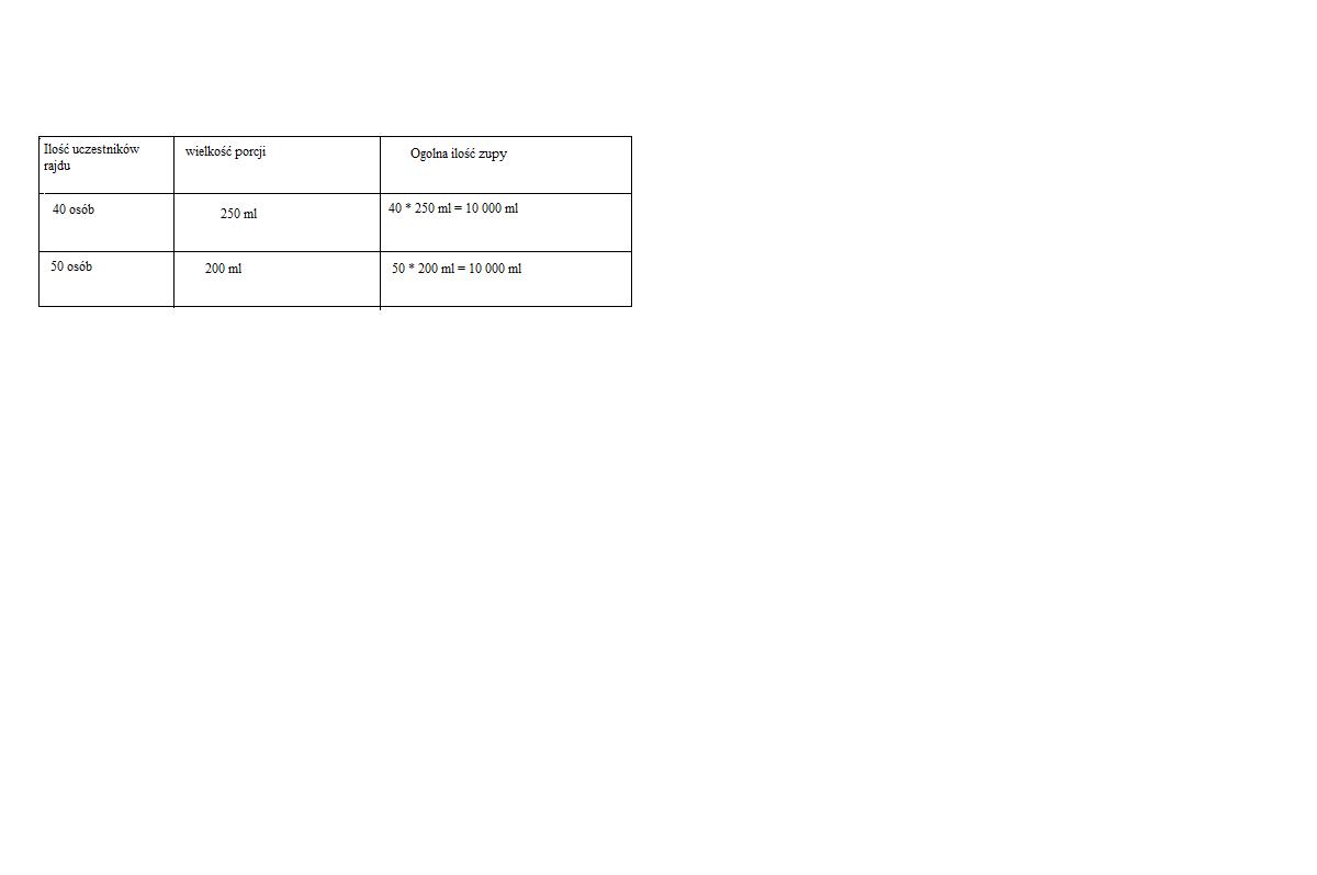 Odp. Obecnie na każdego uczestnika rajdu przypada 200 ml zupy.