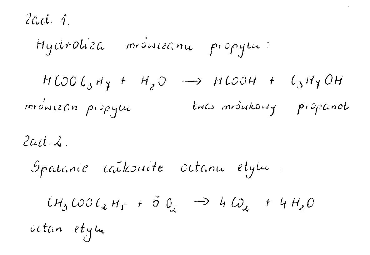 1. Napisz równania reakcji hydrolizy : mrówczanu propylu