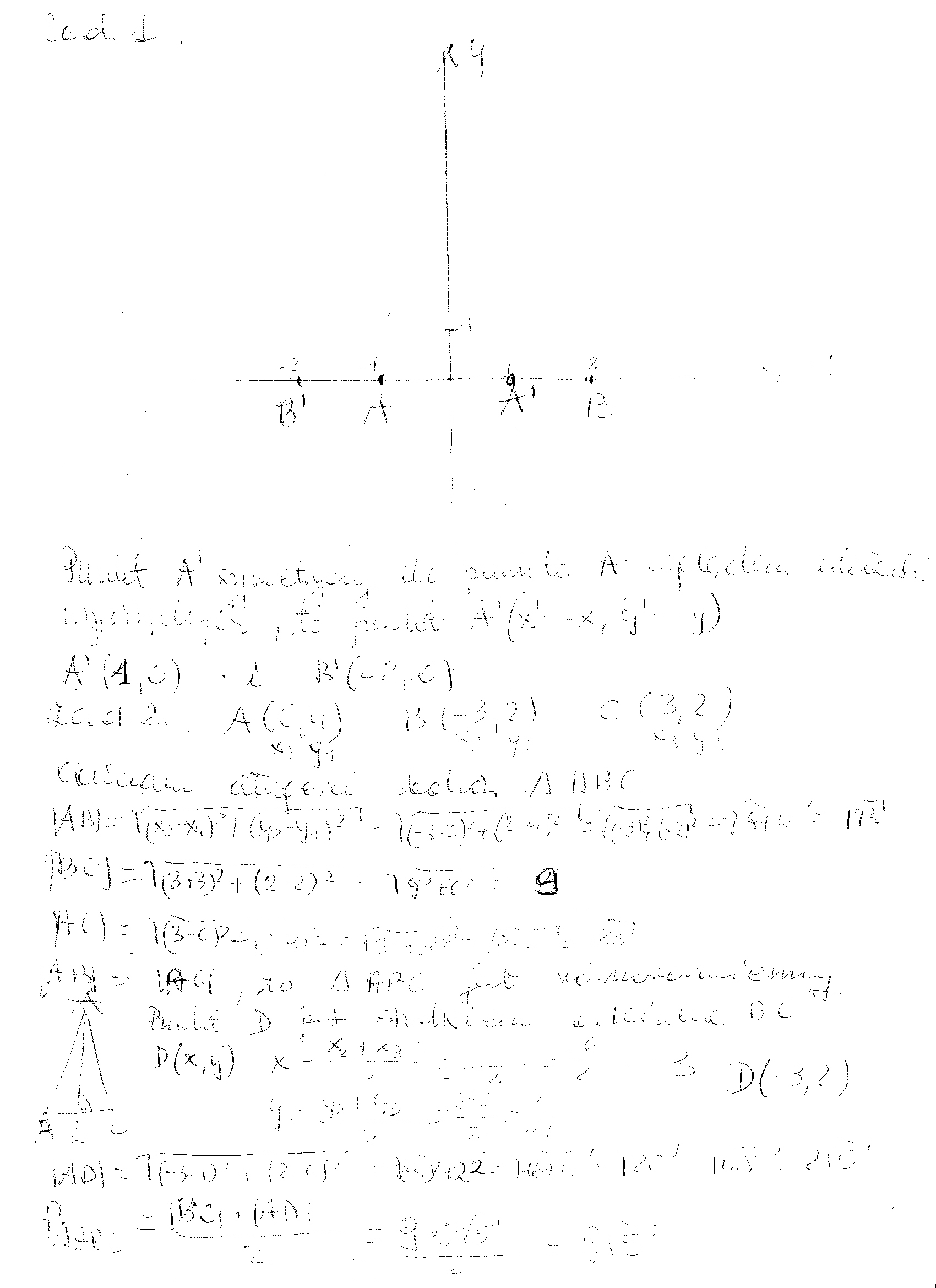 Znajdź punkty symetryczne względem początku układu współrzędnych.