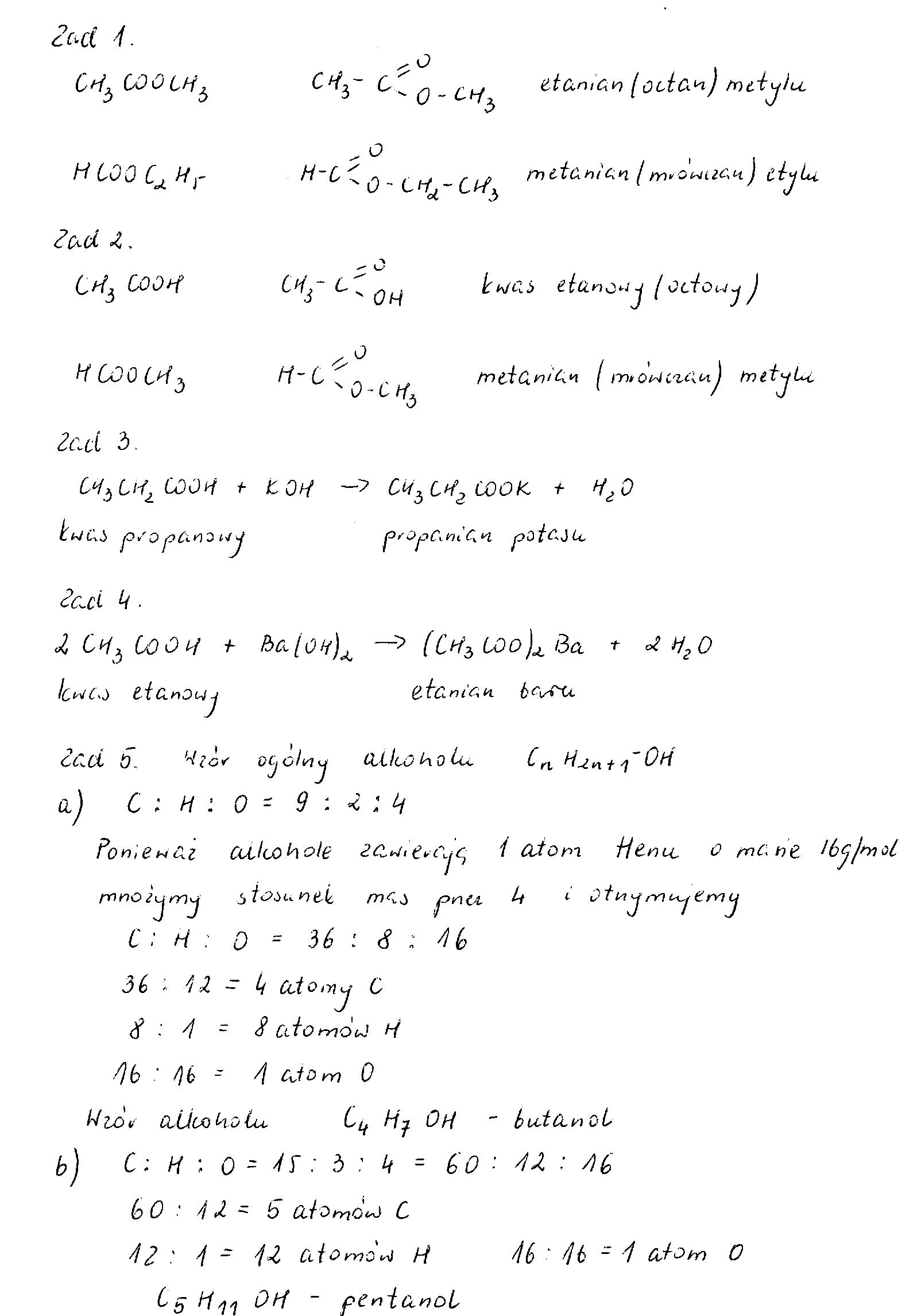 2) Kwas karboksylowy i Ester mają wzór C2H4O2, napisz ich nazwy i wzory półstrukturalne.