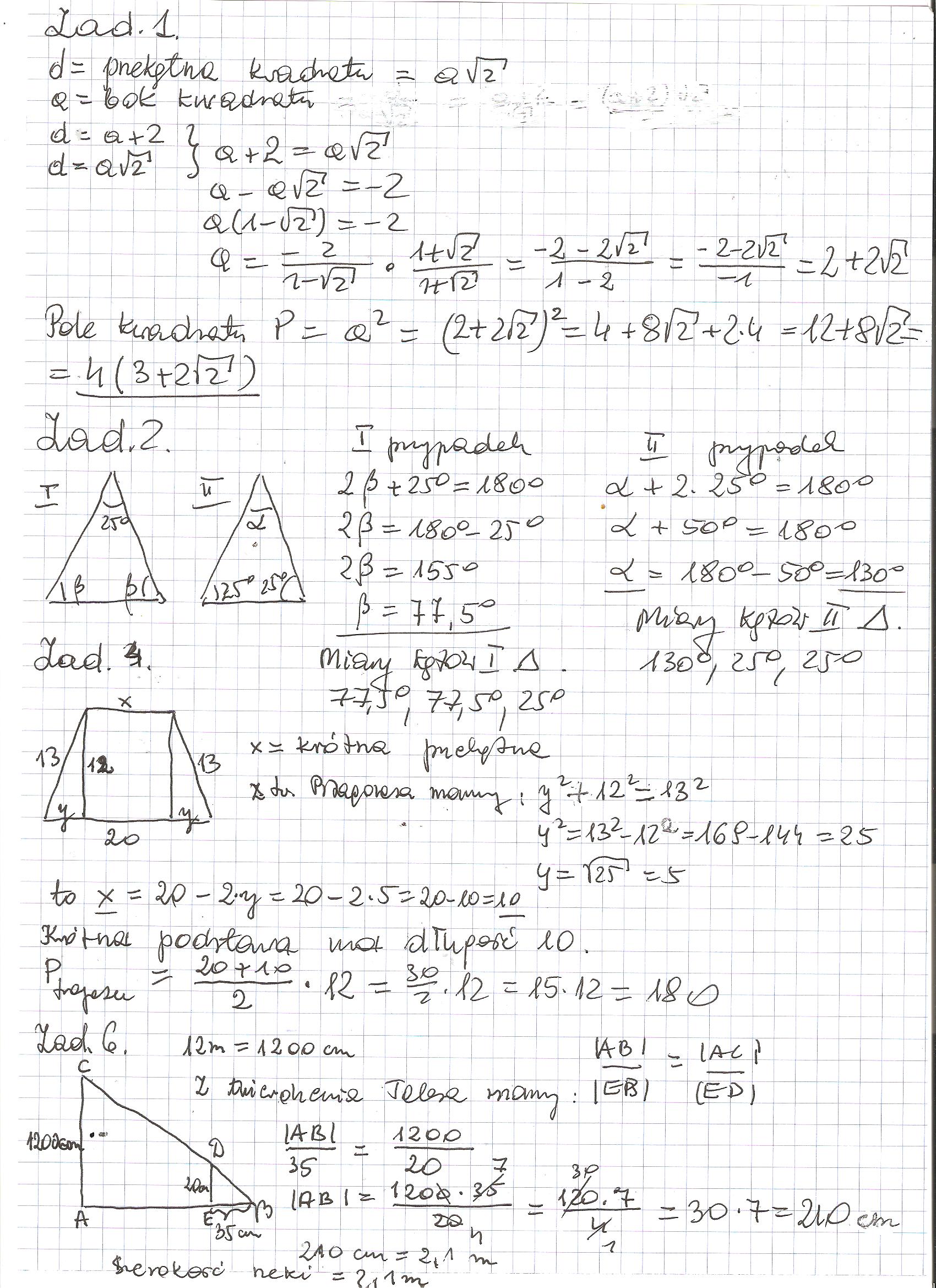 2. Przekątna kwadratu jest o 2 cm dłuższa od jego boku. Oblicz pole tego kwadratu.