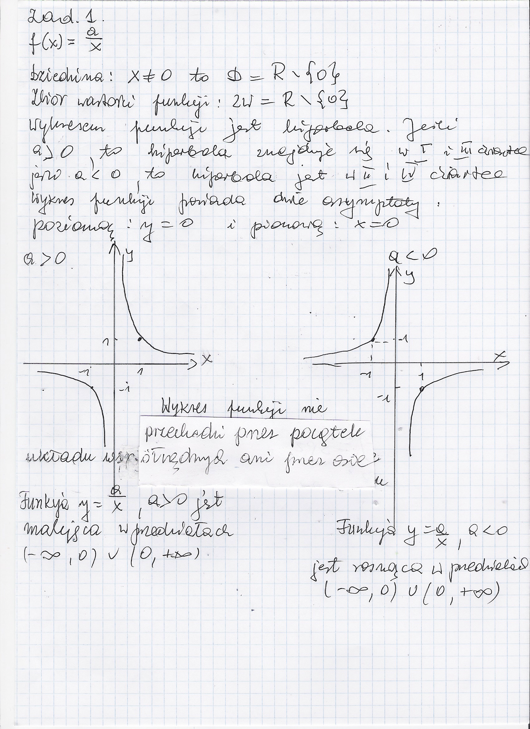 Może napisz to używając raczej f(x) = a / x, a nie kresek ułamkowych, albo napisz na kartce i zdób zdjęcie. Tak, jak wyżej jest mało czytelne.