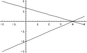 Natomiast wierzchołek to punkt przecięcia obu prostych, otrzymany z rozwiązania układu równań: