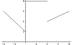 Funkcja jest nieokreślona dla x = 0 (nie ma znaku mniejsze równe albo większe równe w 2 pierwszych liniach wzoru funkcji) więc na prawym końcu ukośnej kreski (tej po lewej) rysujesz kółko. Na obu końcach poziomej kreski też rysujesz kółka, natomiast na lewym końcu ukośnej kreski (tej z prawej strony) rysujesz kropkę bo dla x = 2 obowiązuje dolna linia ze wzoru funkcji.