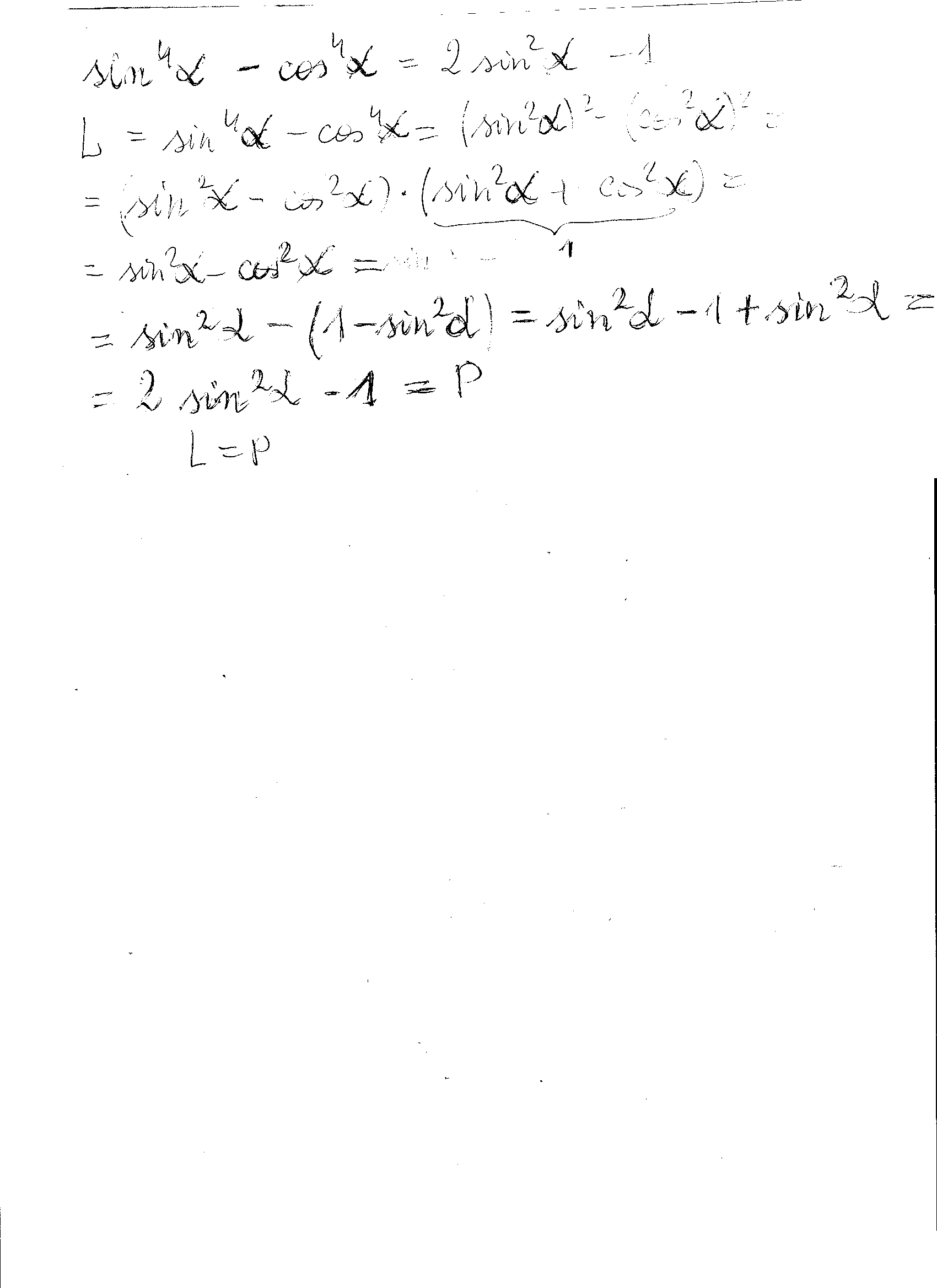 uzasadnij tozsamość : sin4alfa- cos4alfa= 2sin2alfa -1