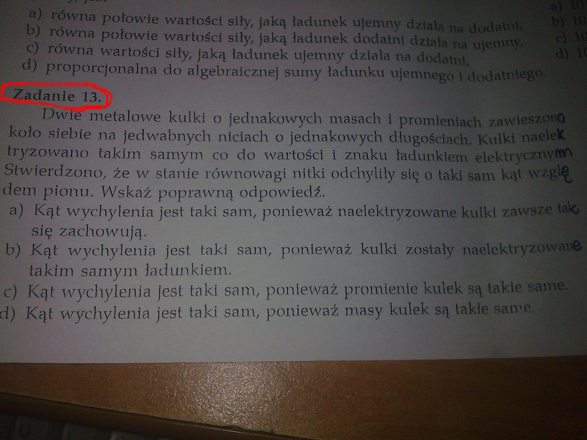 Warunek równych ładunków jest już w treści zadania, więc NIE odp. b.
