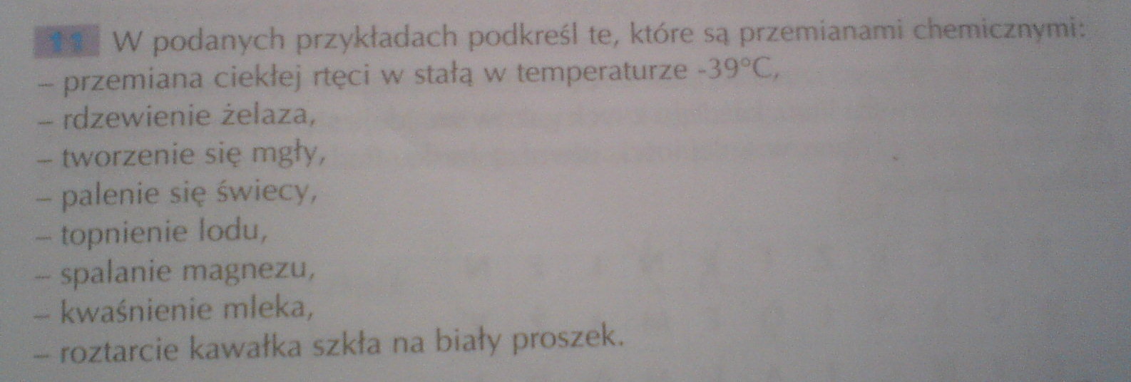 rdzewienie żelaza , palenie się świecy , spalanie magnezu , kwaśnienie mleka.