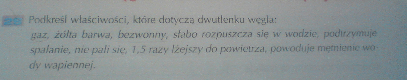gaz , bezwonny , nie pali się , powoduje mętnienie wody wapiennej.